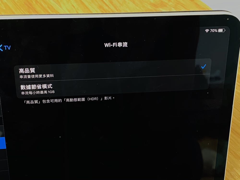 。在 iPhone 和 iPad 裝置的 TV App 設定中,加入自訂串流品質選項,可以選擇行動網路、Wi-Fi 的流量數據,如採用高品質也會包含「高動態範圍(HDR)」影片,想要節省流量就可以選擇「數據節省模式」串流每小時最高 1GB。