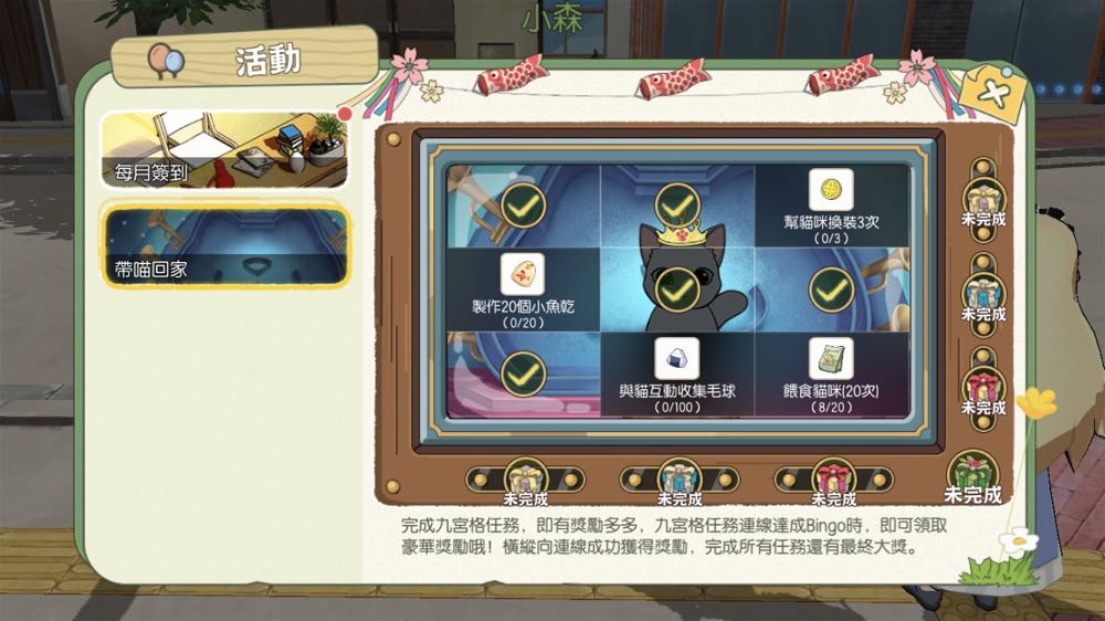 活動內容:在網頁遊戲《小森旅貓》,完成任務就能獲得《小森生活》虛寶。