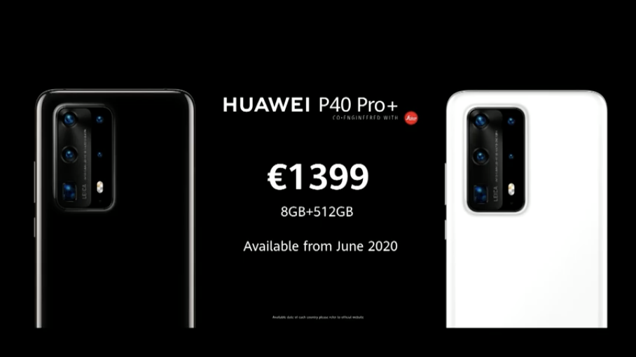 。P40 Pro+ 8GB +512GB 1399 歐元(約 NT$46,500),預計 6 月上市。