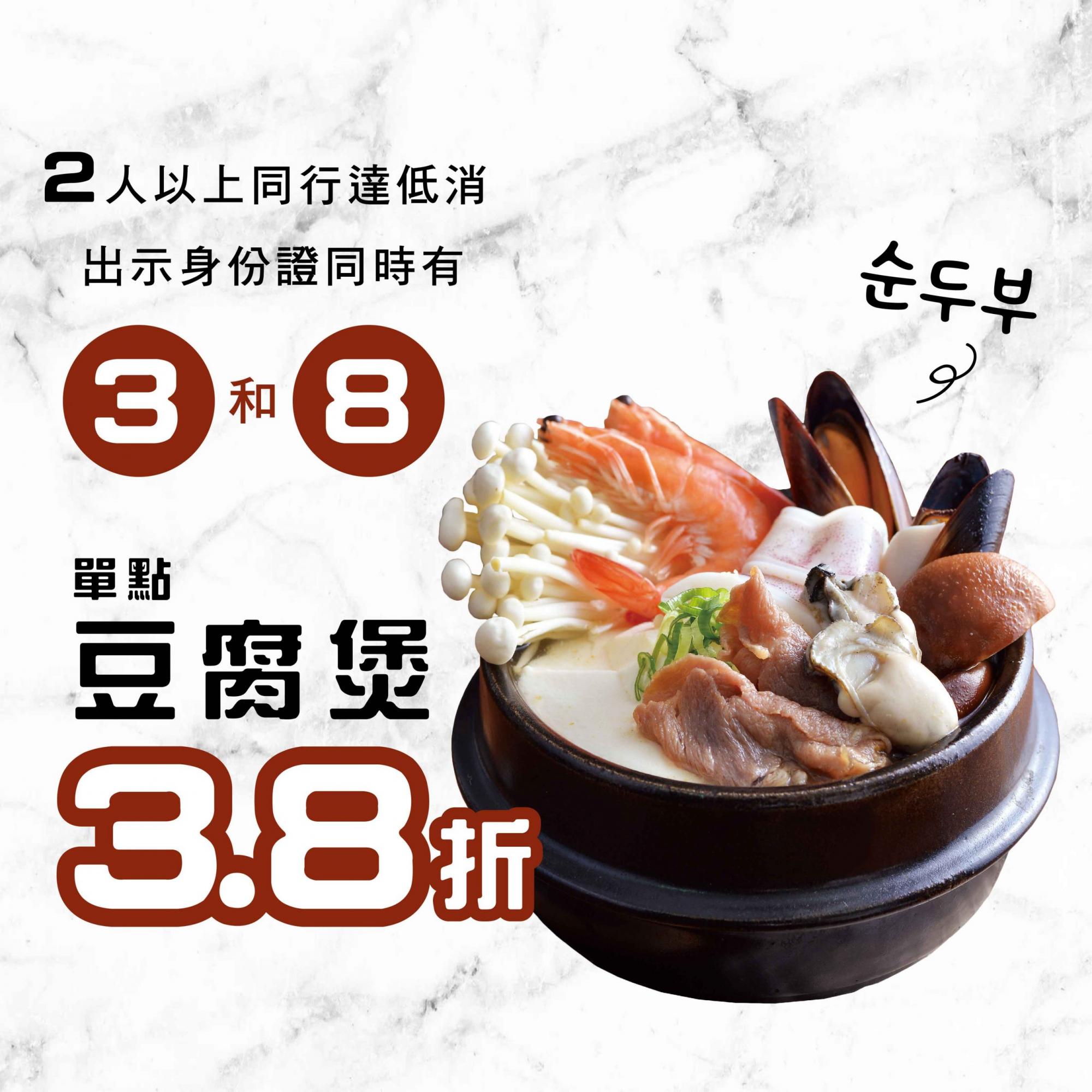 身份證同時有3和8的您你妳任選韓國豆腐煲享3.8折