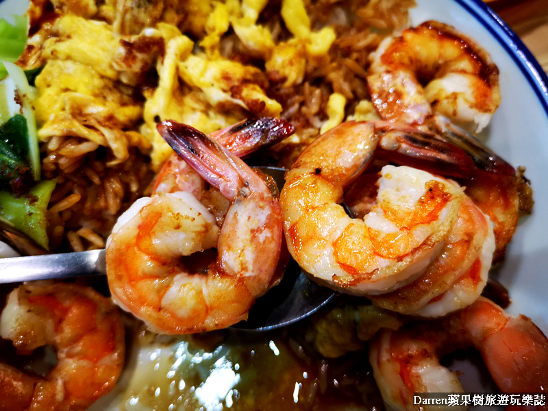 蝦仁飯可以選擇太陽蛋或滑蛋,我選擇的是滑蛋,蝦仁個頭非常大,很容易吸引大家的目光,拍照上傳臉書IG吸了不少讚數