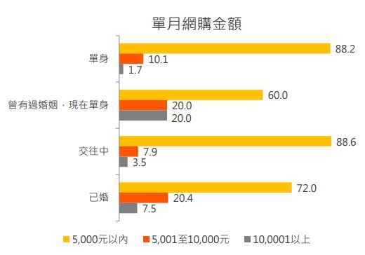 3.超過 20% 的離婚女性單月網購金額突破一萬元,更樂於犒賞自己