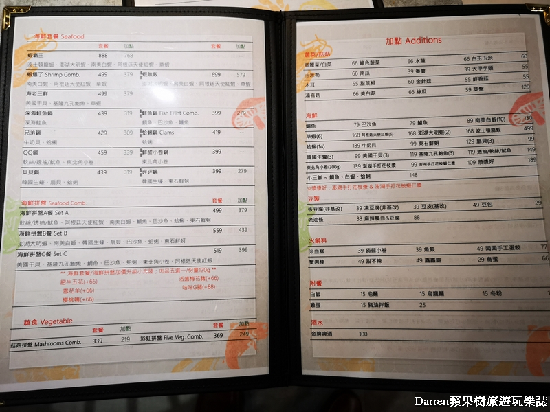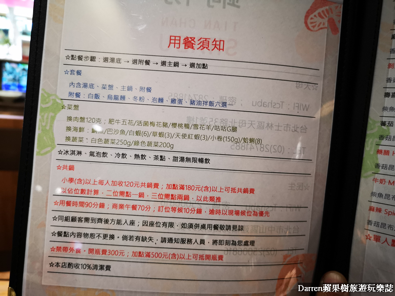 ▲▼天棧鍋物菜單MENU,他們家的菜單選擇品項真得夭壽多,點餐步驟選湯底→附餐→主鍋→加點,先講湯頭就有多種口味,再來選擇主鍋從單人到4人菜單品項都有,建議來之前可以先上天棧鍋物FB確認一下優惠方案,因為店家不定期推出優惠,可以先考量想要的優惠