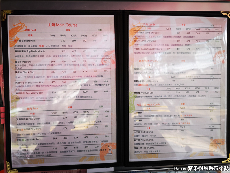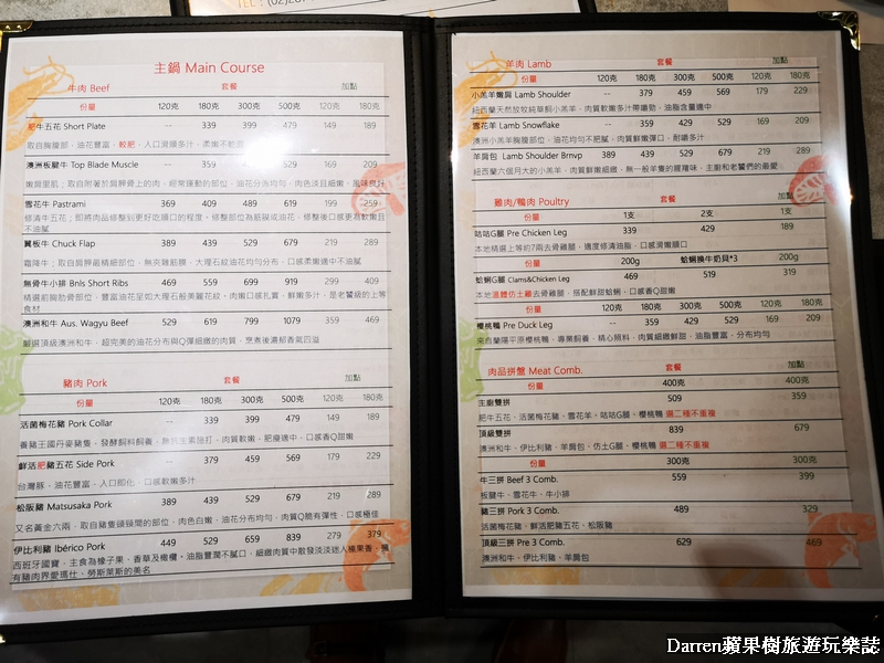 ▲▼天棧鍋物菜單MENU上面都註記的非常清楚每一個品項內容