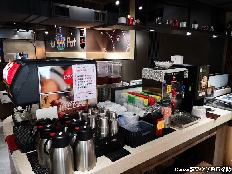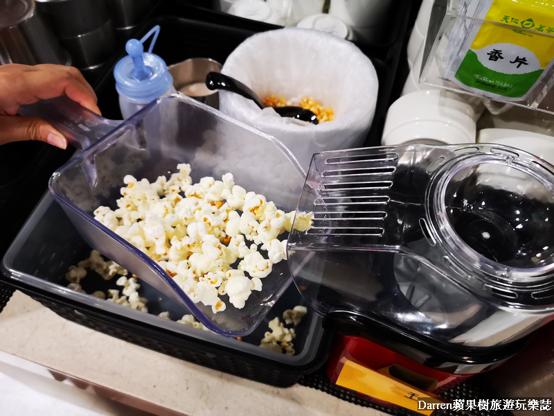▲▼天棧鍋物自助吧提供各式飲料,每次看到飲料機有蘋果汁跟氣泡水,我都會加各一半變成蘋果西打,大家有機會可以試試看,個人覺得還挺好喝的唷!冰淇淋有兩種品牌可以選擇,甜湯也有提供兩種可以依自己喜歡來裝盛,另外有台迷你爆米花機,可以自己DIY爆米花,過程很促咪,用完我都想要買一台了