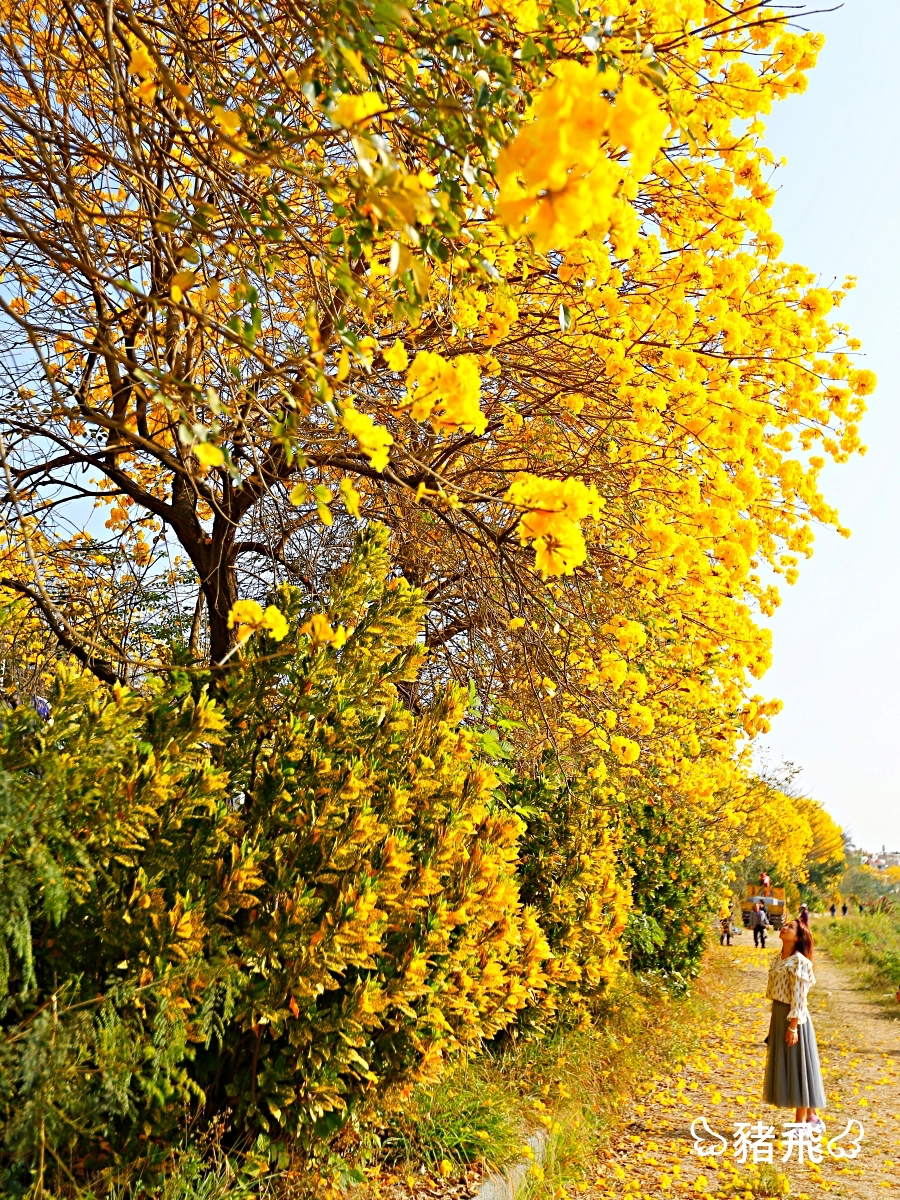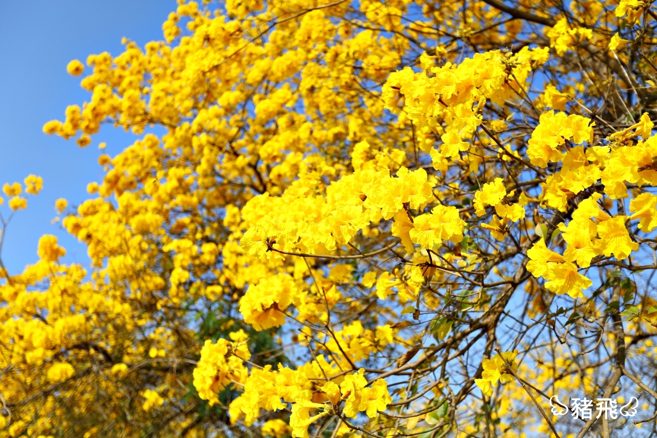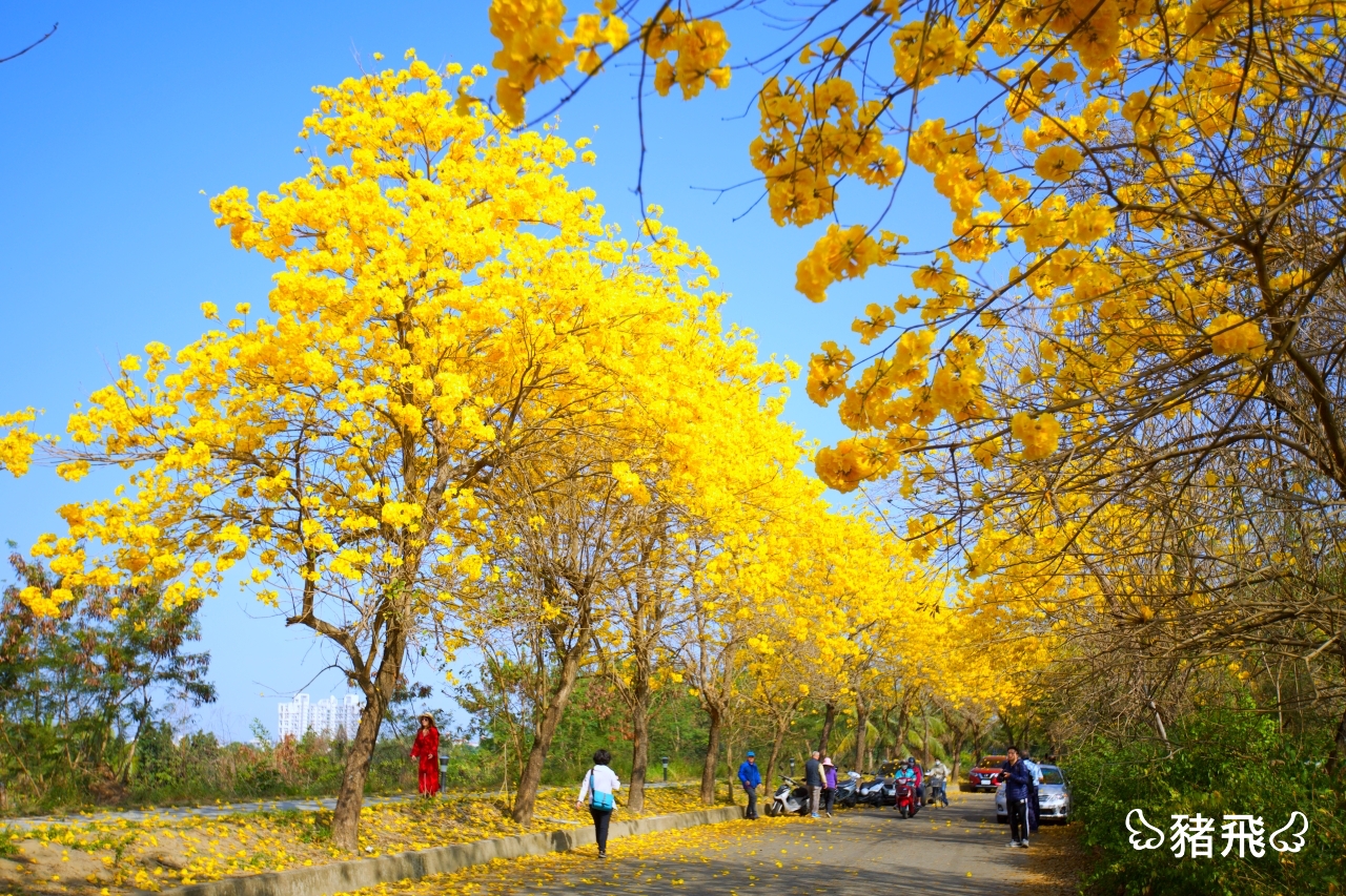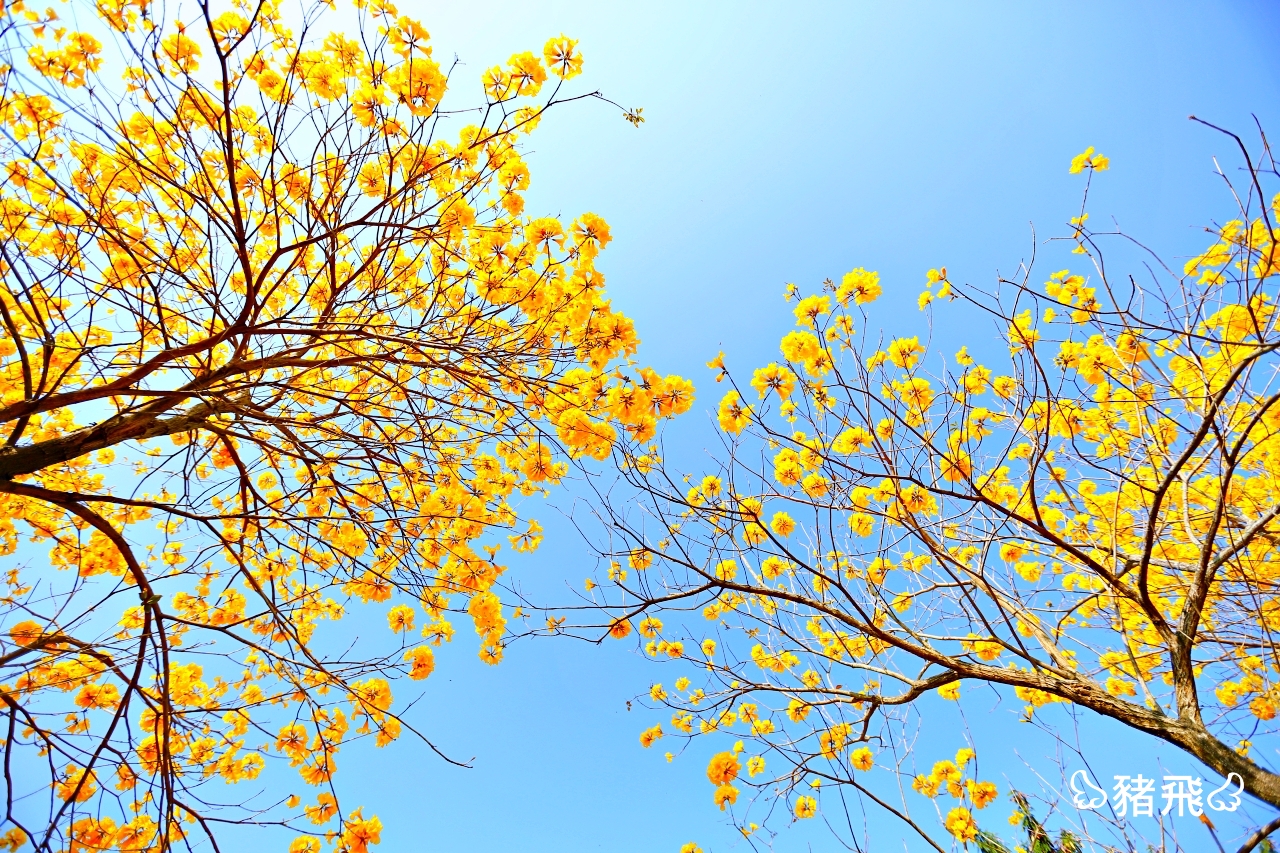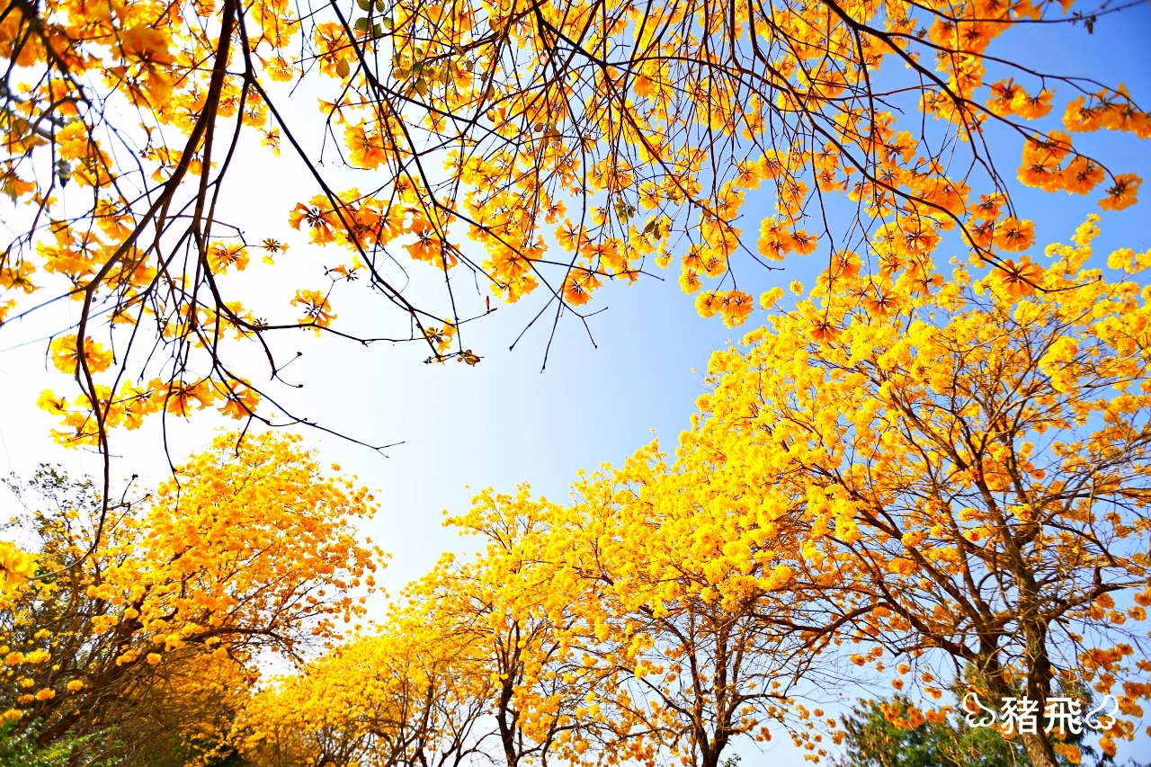最近打開臉書最瘋狂洗版的照片就是這個讓人眼球無法忽視的金黃色隧道黃花風鈴木,繼梅花、櫻花、粉紅風鈴木的花期過後,接著大爆發的美景是充滿熱情活力的金黃色風鈴木,尤其嘉義花期比其他縣市提早兩週開跑,被譽為全台最美「黃金隧道」就在嘉義縣太保市朴子溪,有綿延將近一公里長的花海隧道,真的很值得前往。當然豬飛住的台中也不遑多讓,號稱「台中最美黃金公園」的廍子公園周邊也有一公里範圍的金黃大道,最近更是吸引台中市民前往這個後花園爭相拍照打卡呢。