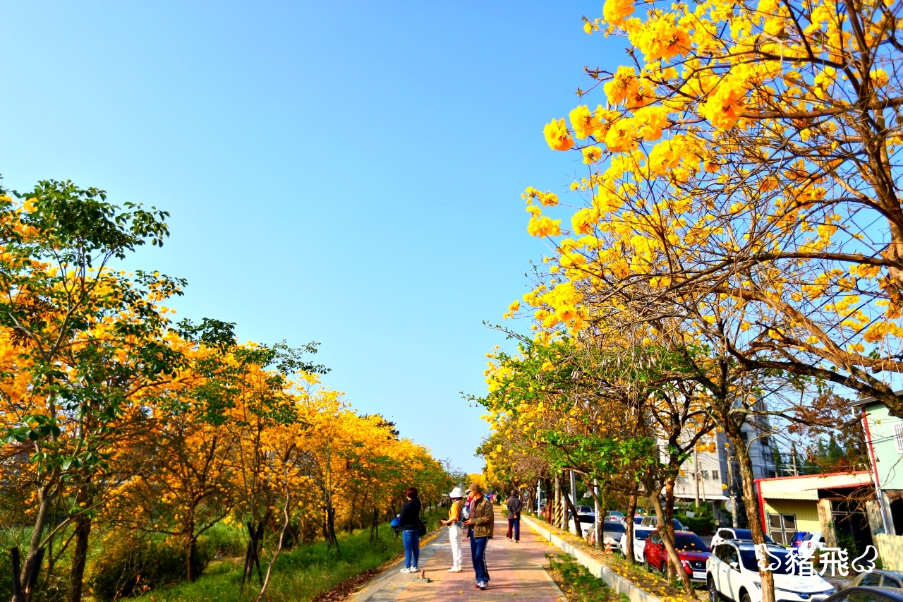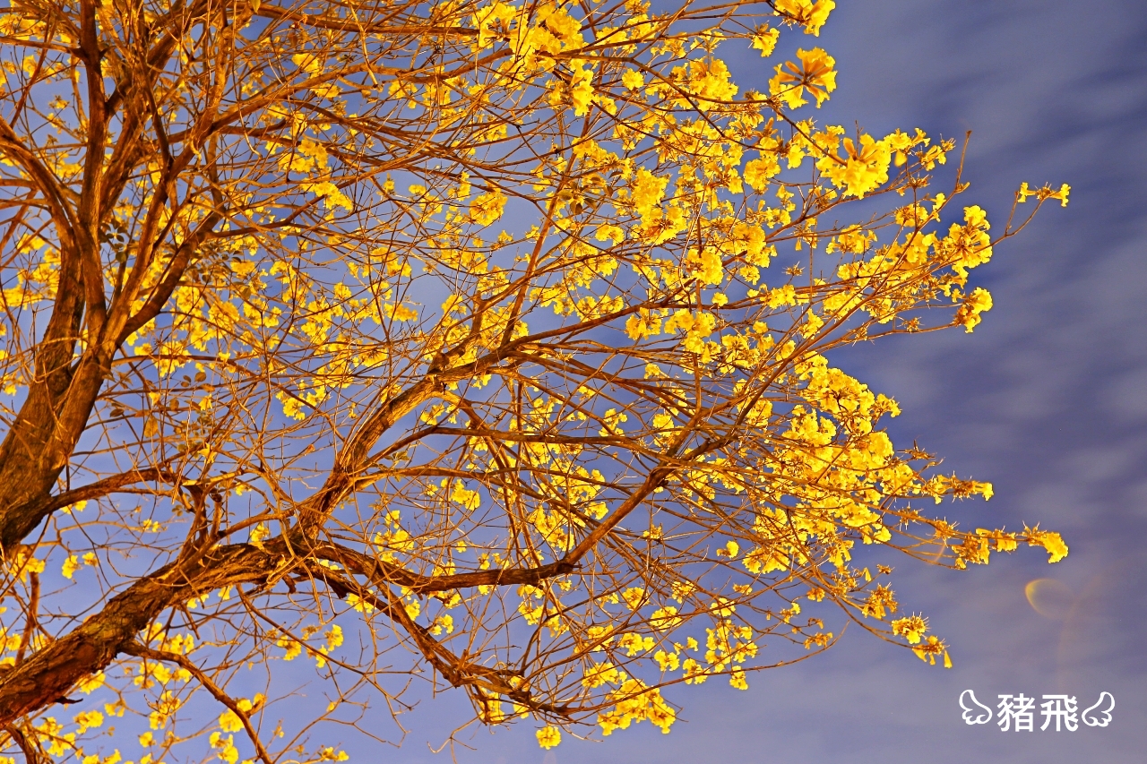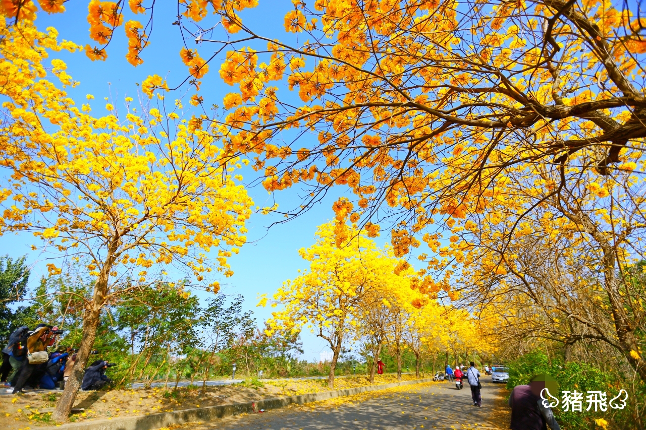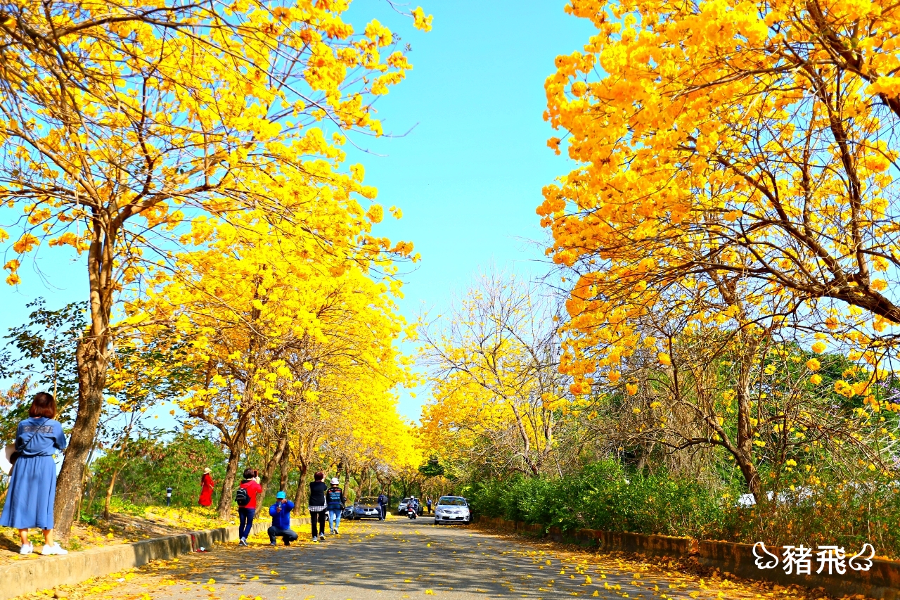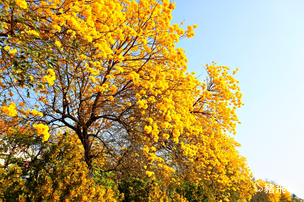 最近打開臉書最瘋狂洗版的照片就是這個讓人眼球無法忽視的金黃色隧道黃花風鈴木,繼梅花、櫻花、粉紅風鈴木的花期過後,接著大爆發的美景是充滿熱情活力的金黃色風鈴木,尤其嘉義花期比其他縣市提早兩週開跑,被譽為全台最美「黃金隧道」就在嘉義縣太保市朴子溪,有綿延將近一公里長的花海隧道,真的很值得前往。當然豬飛住的台中也不遑多讓,號稱「台中最美黃金公園」的廍子公園周邊也有一公里範圍的金黃大道,最近更是吸引台中市民前往這個後花園爭相拍照打卡呢。