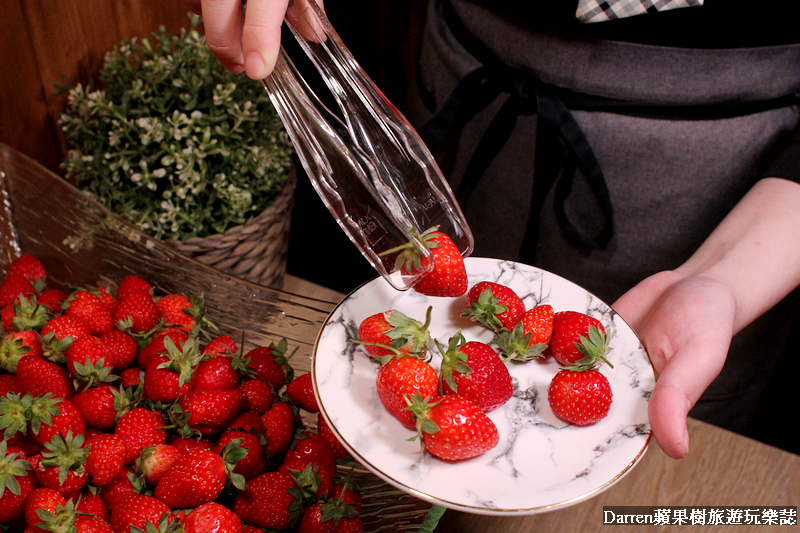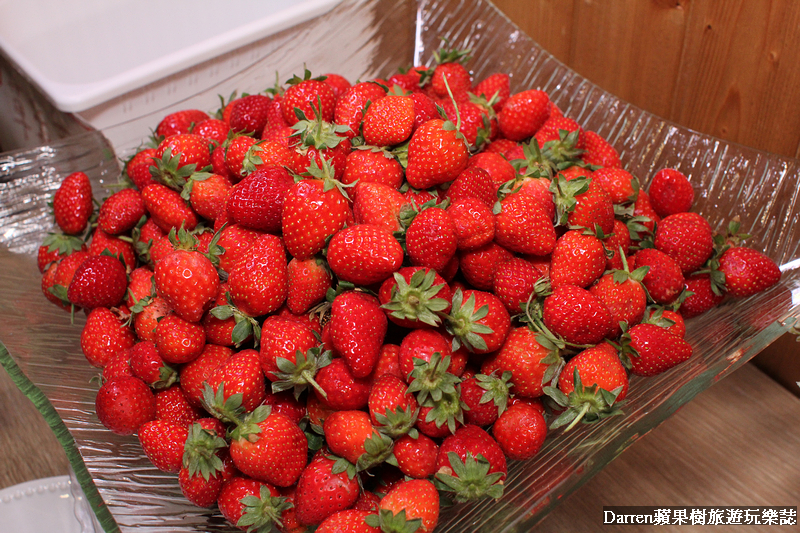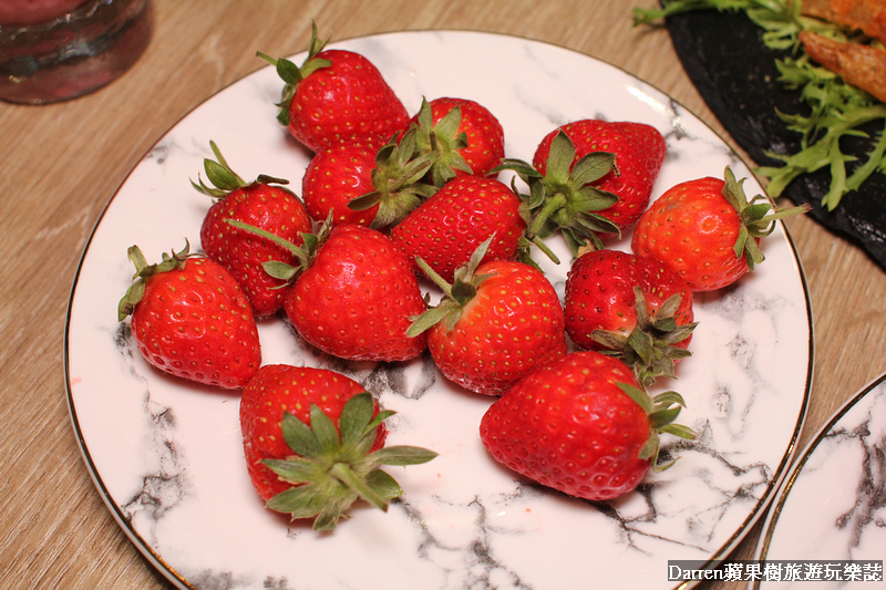 仔細看草莓蒂頭以及絨毛顆粒就大約知道草莓新不新鮮,他們家提供的草莓顏色鮮艷,蒂頭完整翠綠以及顆粒明顯,就知道新鮮來著,除了少數幾顆多少因為清洗會有水傷之外,基本上都是飽滿好吃,草莓吃到飽滿滿幸福感,吃到後面好想要拿個煉乳加上去吃啊XD