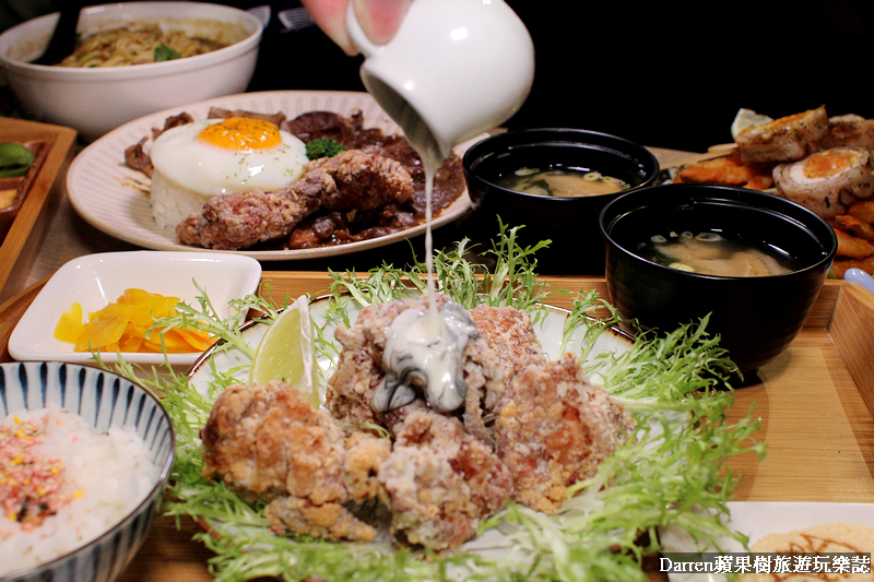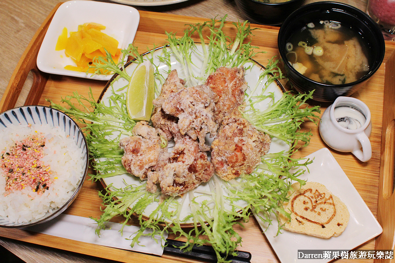 ▲▼卡拉拉瀑布炸雞定食,好咖的超人氣日式炸雞定食,旁邊有大理石醬依拍照sop來說,免不了來個炸雞淋上大理石日式淋醬的畫面,炸雞是用成本較高的日式炸粉,吃起來酥脆不會太鹹或過硬,配菜有可愛梨梨醬玉子燒,白飯可再續一次,還有小菜和味增湯,是道很受歡迎的日式定食