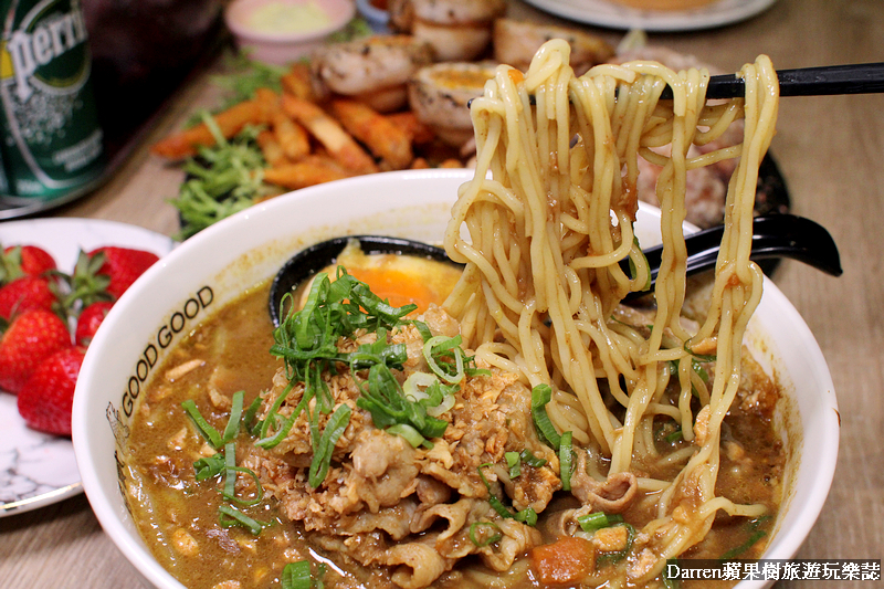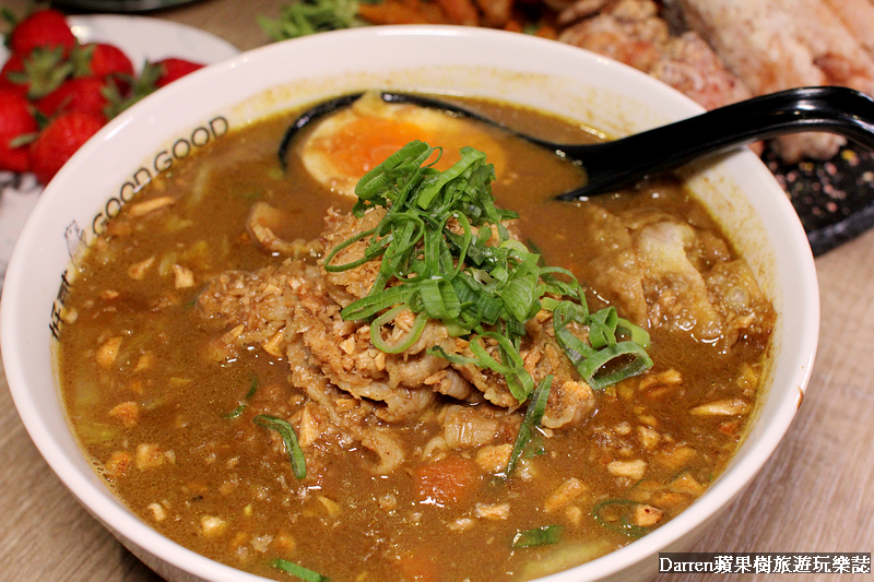 ▲▼職人咖哩麵,好咖終於有咖哩麵了,不知道為什麼對於飯跟麵,樹小編慢慢對於麵的好感又多了一些,他們家的咖哩麵是用日式拉麵麵條,在吃的同時會將湯咖哩醬汁一起帶入口中,可以感受到Q彈麵條和香濃咖哩所搭配出完美的滋味超級涮嘴,就是那種你吃到好吃的拉麵,就會不斷地往嘴裡送的爽度,裡頭還有溏心蛋和炸餛飩配料非常豐富