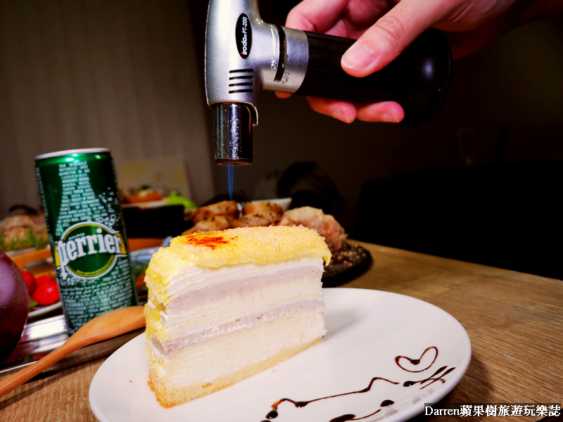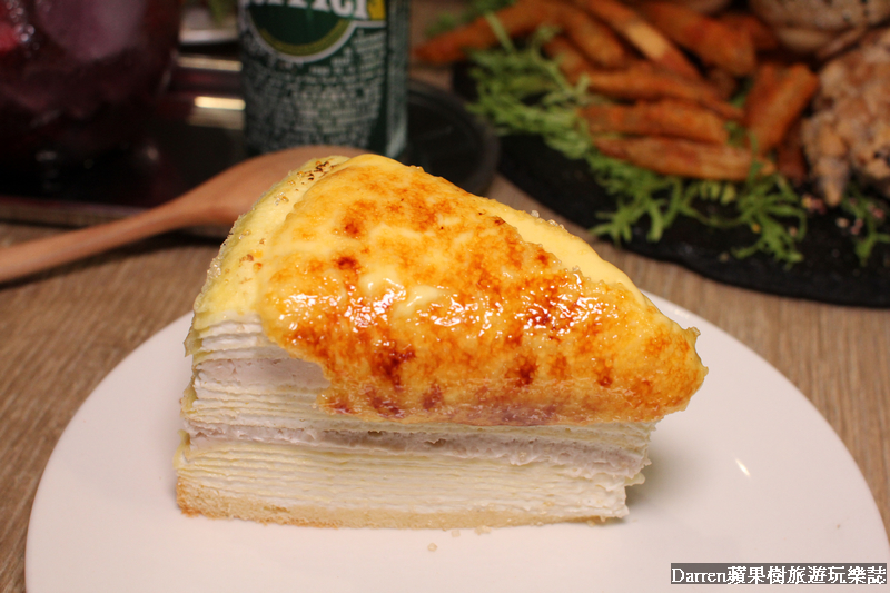 ▲▼烤布蕾芋泥千層會先來個噴火秀,瞬間焦糖會暖暖流下來,香濃可口又有焦糖脆脆的口感