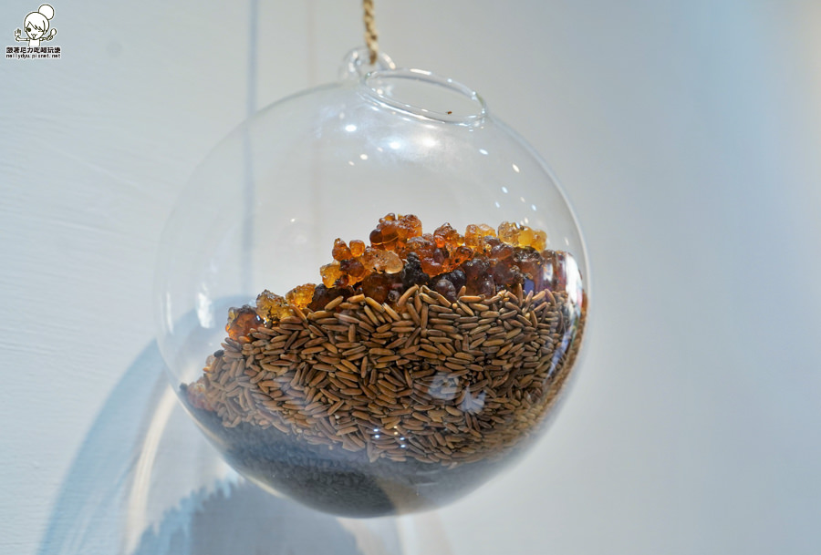 店鋪內也有展示桃膠、玄米、黑豆等榖物、植物
