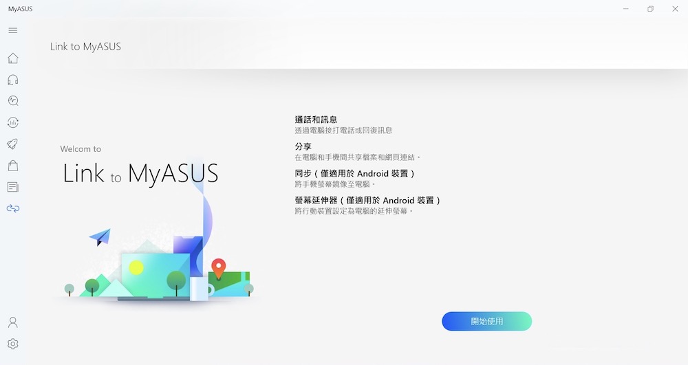 當然,MyASUS 也提供很方便的聯絡人資訊同步的服務,只要登入 Link to MyASUS 後,就能在筆電上通話和傳訊息、共享檔案、同步手機畫面,或是讓手機變成螢幕延伸器,提供更多元的應用及便利性。