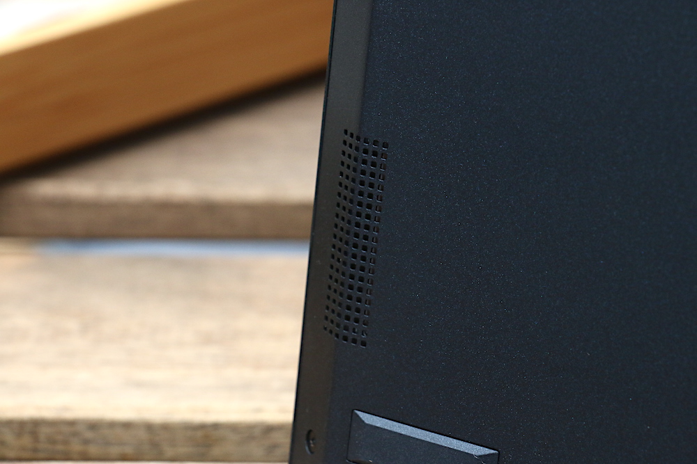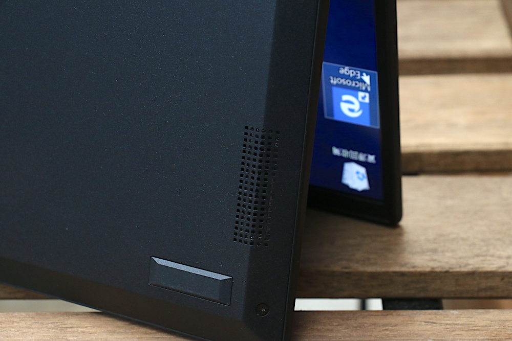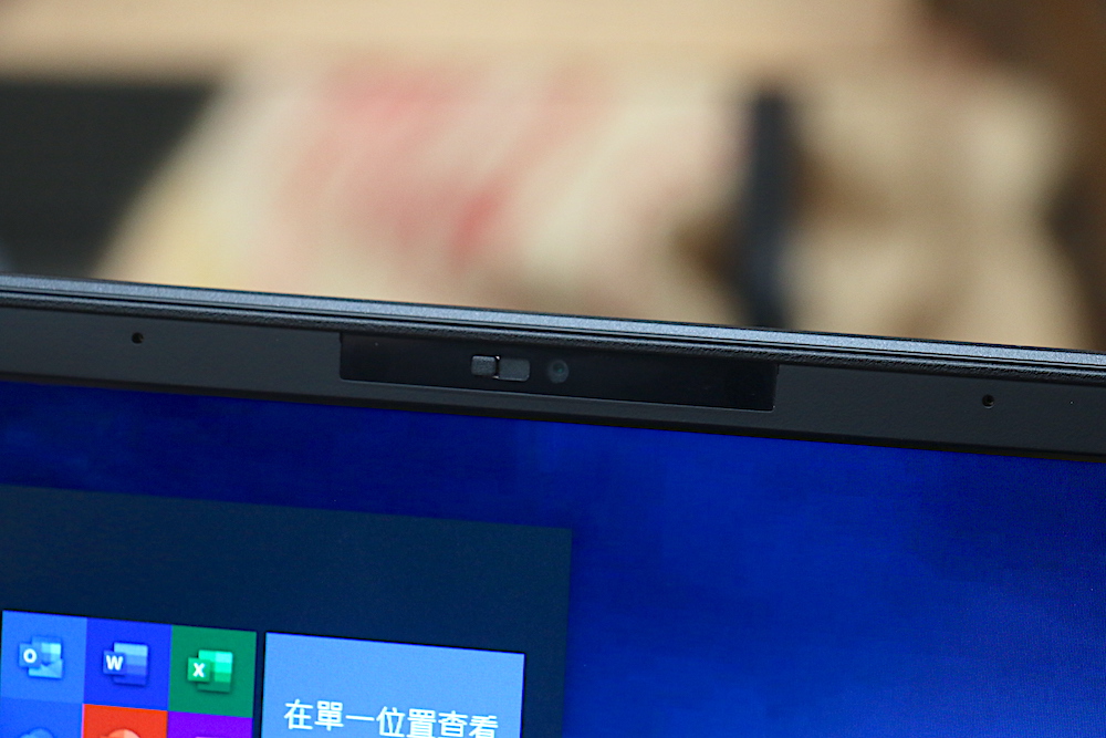 螢幕上方的邊框之所以比較寬,是因為新增前一代沒有的視訊鏡頭、紅外線鏡頭,以及由四個 360 度全向式遠場麥克風組成的矩陣式麥克風。值得一提的是,視訊鏡頭還附上一個遮蓋,沒有使用時可以關上,讓在意隱私的使用者可以安心使用。另外,陣列麥克風內建抗噪晶片,可以過濾 70% 以上的背景音,遠端會議時聲音可以更清晰,非常適合做視訊或語音會議。