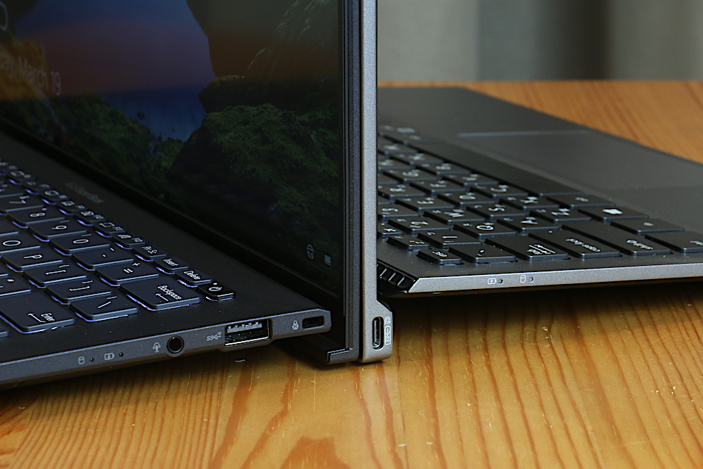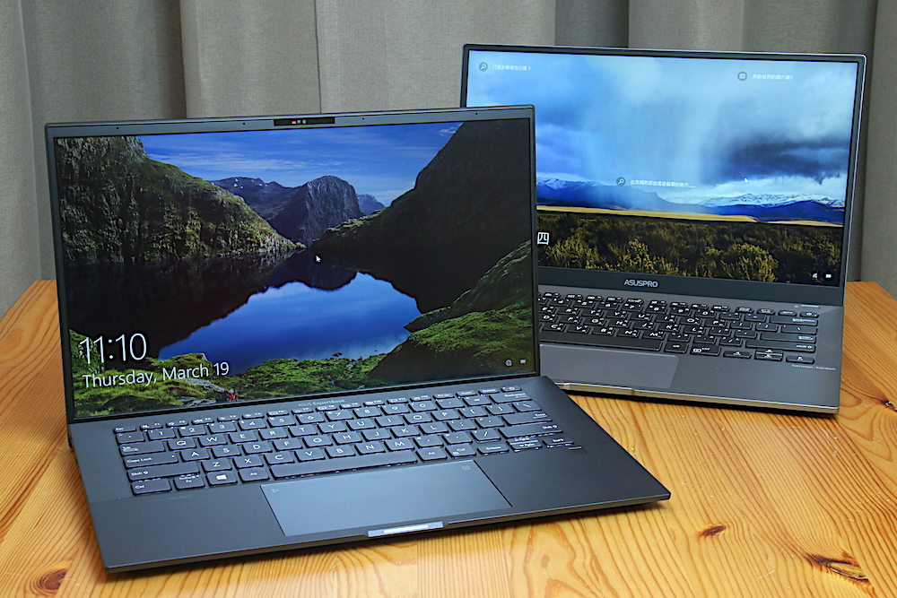 兩台筆電同樣是 14 吋螢幕,ExpertBook B9 (B9450) 的機身與重量都比 ASUSPRO B9440 還要小一點,前者是 203mm、重量 995g,後者則是 216.2mm、重量 1.05kg,雖然兩者的差異並不大,但對於喜歡把電腦放在公事包或手提包的朋友來說,輕盈的感覺就會特別明顯。