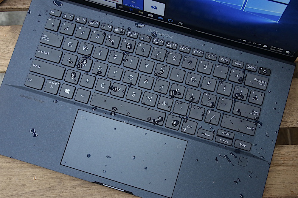 ASUS ExpertBook B9 (B9450) 的機身採用鎂鋰合金製成,C 件則是使用鎂合金,整台筆電僅有 995g,厚度也只有 14.9mm,並且通過摔落、撞擊、震動、沙塵、高 / 低溫、高海拔以及濕度…等 MIL-STD 810G 美國軍方測試標準,不僅輕薄好攜帶,耐用度也更加出色。