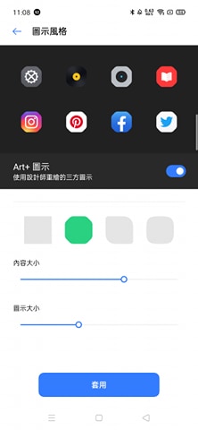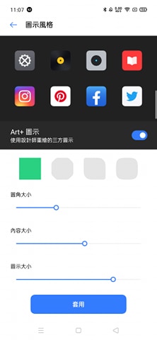 realme UI 秉持一貫的「本真設計」,採用大自然中高飽和度、高明亮度的顏色進行搭配,展現簡約但不簡單的介面風格;並加入高度個人化的APP ICON自定義功能,從外框弧度、圖示內容甚至ICON尺寸,都可隨用戶的喜好自由搭配。訊息通知則加入眾多用戶喜愛的呼吸燈設計─全景光效註1,在收到訊息或來電時,螢幕自動亮起並展示氛圍光效,由暗到亮的細膩呈現如同呼吸一般自然內斂,沒有張揚的鈴聲,只有低調的守候與陪伴,為生活添增無限趣味。
