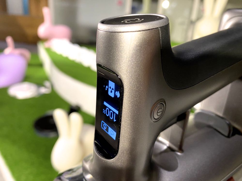 其中 H6 無線吸塵器在機身上搭載著 OLED 螢幕,能夠顯示剩餘電量、吸力模式、按鍵開關等資訊,機身旁邊有個小小的按鈕,按下去後只要按一下開關便能持續吸塵,不用像以往的長按方式來使用。