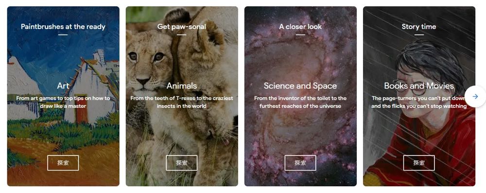 Google 藝術與文化陸續打造出更完整、更接近實際造訪的博物館參觀體驗。今天新增的家庭專頁,涵蓋了藝術、動物、科學宇宙及故事分享等探索項目,以更活潑、有趣的方式,像是床邊故事、結合藝術的遊戲等,讓藝文知識更容易學習,亦可幫助提升親子互動的樂趣。此外,Google 藝術與文化早前所推出的藝術轉印 (Arts Tranfer) 功能可讓照片或自拍添增藝術個人化風格;在思考居家美化的時候,更可以用藝術調色盤 (Arts Palette) 選擇喜愛的顏色或符合家中背景色調,找到合適且搭配的藝術靈感,或利用擴增實境的方式將真實的藝術品以等尺寸比例方式擺設在家中空間。除了文化機構室內外的實境環景,Google 藝術與文化所提供的 360度影音內容就彷彿虛擬的博物館導覽功能。