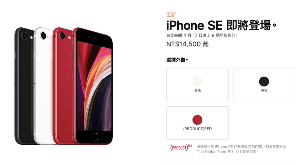 價格方面,iPhone SE 按照容量不同,售價為 64GB NT$14,500 / 128GB NT$16,500 / 256GB NT$20,000,4 月 17 日(五)台灣時間晚上 8:00 在 Apple 官網開放預訂。