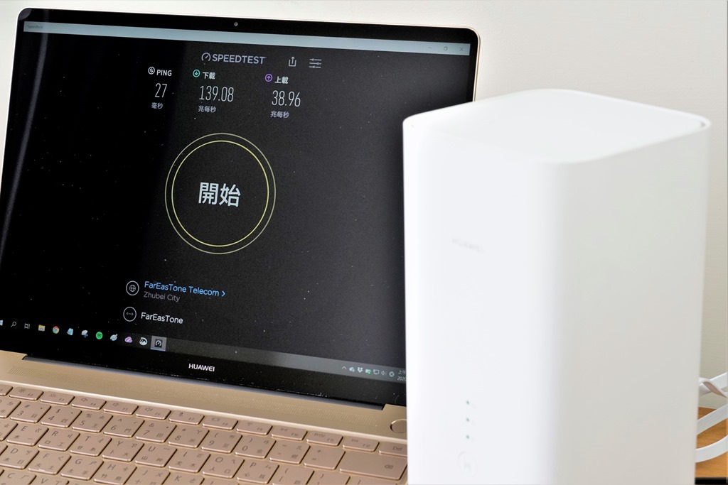 接著用有線網路連接筆電測試,測得下載 139.08Mbps、上傳為 38.96Mbps。如果是只提供 100Mbps Fast Ethernet 規格的路由器,可能今天的數字就無法這麼漂亮,還好 HUAWEI B818-263 無線路由器使用支援到 1000Mbps 的 Gigabit Ethernet 網路孔,更能完全展現寬頻網路的優勢。
