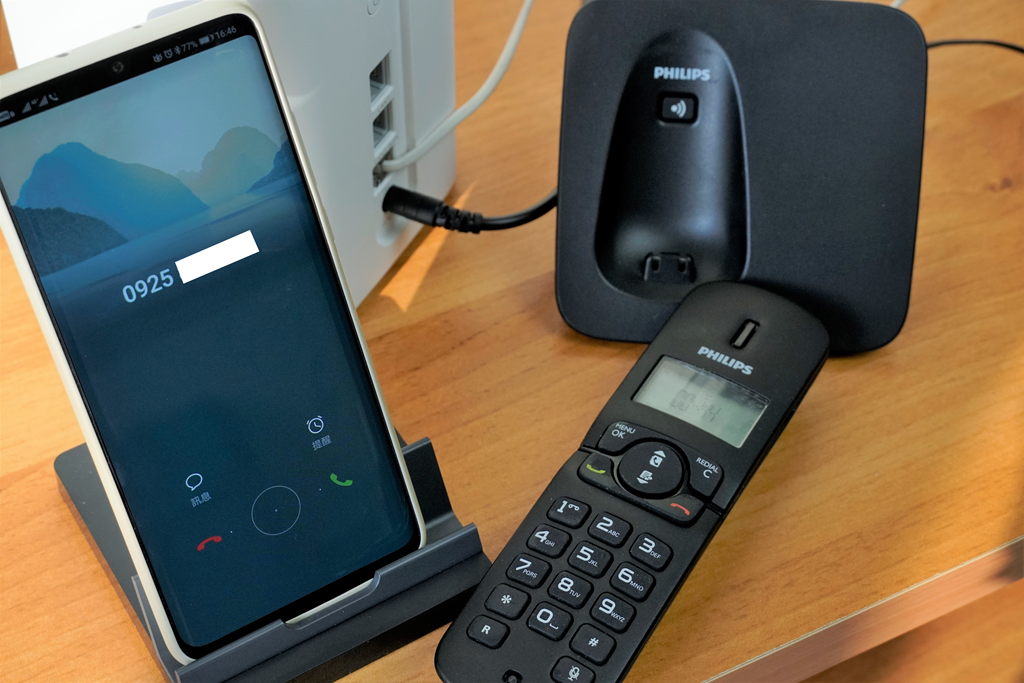 在路由器背後還有電話線孔,這真的能用嗎?直接插上家用電話後來測試看看。