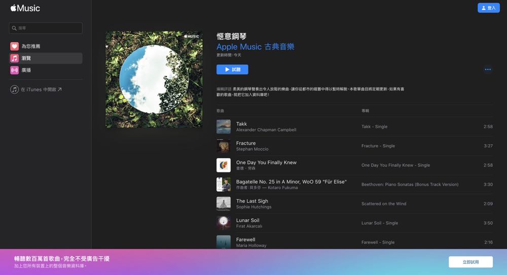 Apple Music 網頁版:https://music.apple.com/tw/browse