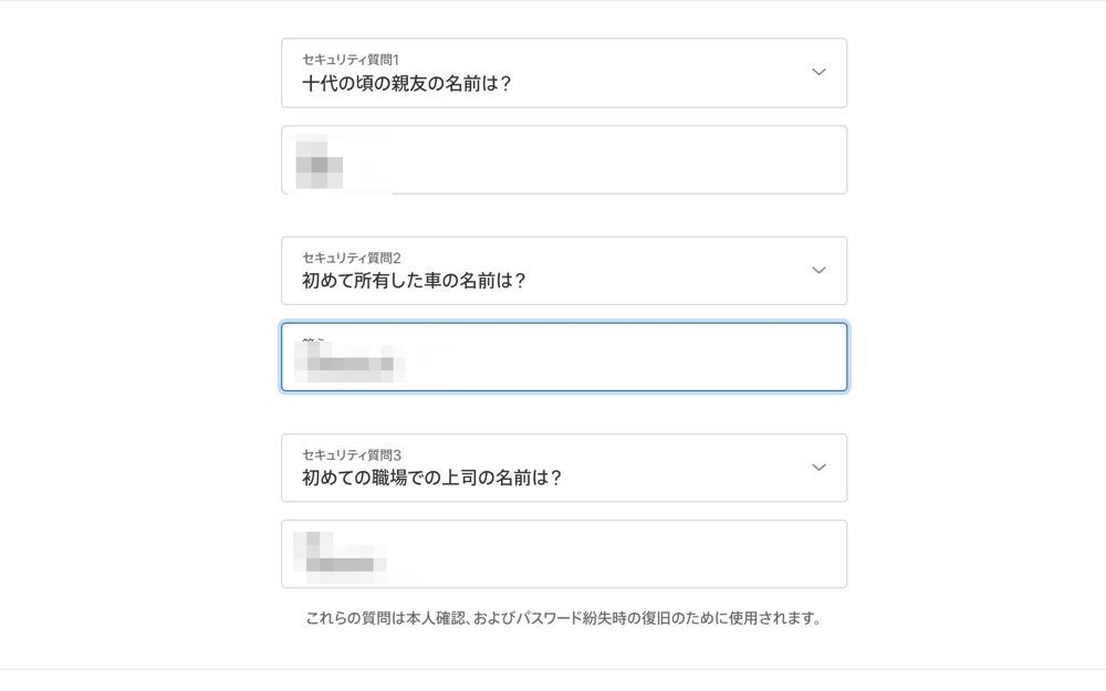 3) 然後自己輸入三個問題的答案,這邊看不懂日文題目也不要緊,重點是要記得這三個欄位自己輸入了什麼!(所以建議可以截圖下來!)
