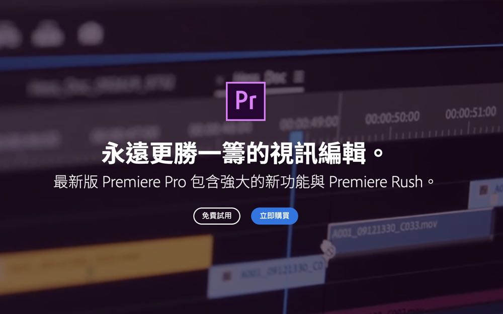 Premiere Pro 擁有您需要的一切創作能力,且能夠與其它 Creative Cloud App 應用程式與服務完美搭配。這套軟體能夠無縫連接 After Effects 製作戲劇化開場、Adobe Stock 剪輯原始影片、Adobe Audition 調整音效、或是整合數百種第三方特效,製作最佳內容。對於想要在單一應用中擁有簡單與全面性工作流程的使用者,Premiere Pro 是最適合的選擇。