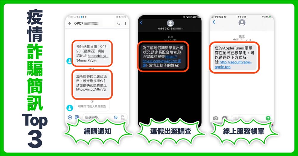 疫情假訊:發送不實消息、釣魚簡訊、詐騙電話、電郵等