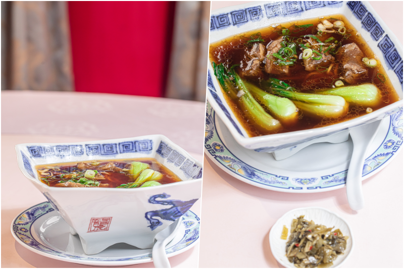 首先第一道,就是相當有特色的圓山紅燒牛肉麵(每碗420元,需再加一成)