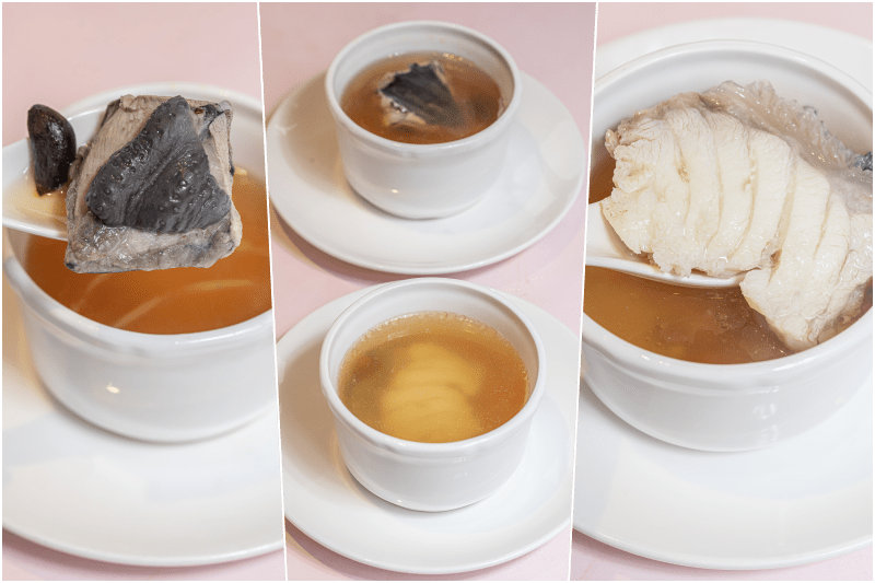 如果想要感受海鮮風味的饕客,可以選擇花旗蔘不會給人過度強烈的花旗蔘燉龍膽斑,喝起來感受的到淡雅風味之外,還有很不錯的滋補感,再加上龍膽石斑口感非常彈牙,所以搭配起來相當有活力