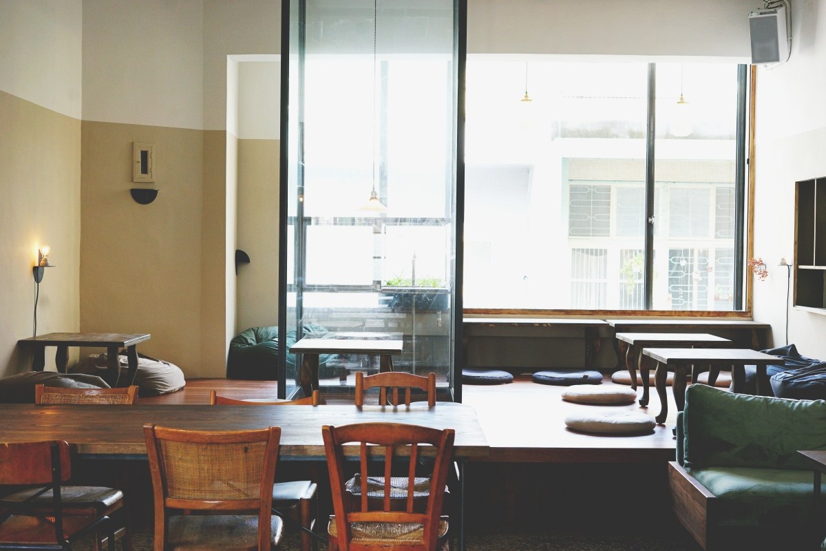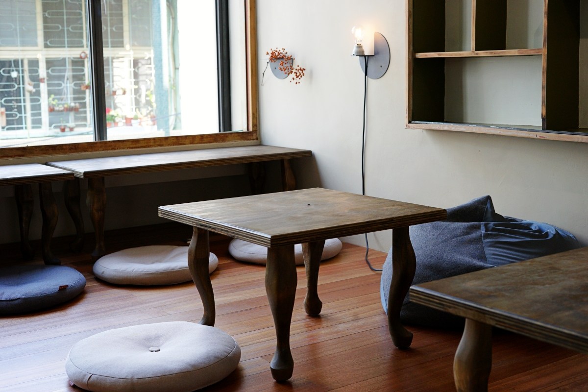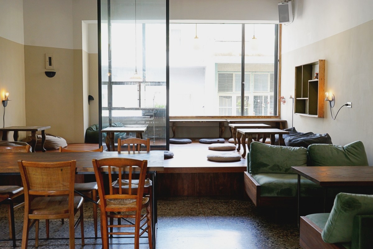 二樓空間靠窗的位置設計類似日式臥榻的空間,但比一般家中的空間大許多,可以放更多人在上面放空耍廢,搭配懶骨頭,真的會讓人癱軟在上面,但我每次去,朋友最後都會帶上一句「這樣久了懶骨頭上面會有腳臭味」,總讓我回到現實哈哈哈哈哈⋯⋯我也很想知道店家會如何處理啊~