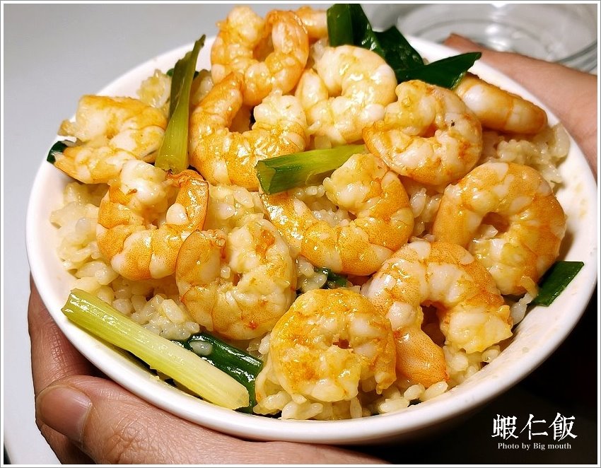 ▼起鍋後將飯盛裝到碗裡,蝦仁擺上,完成!