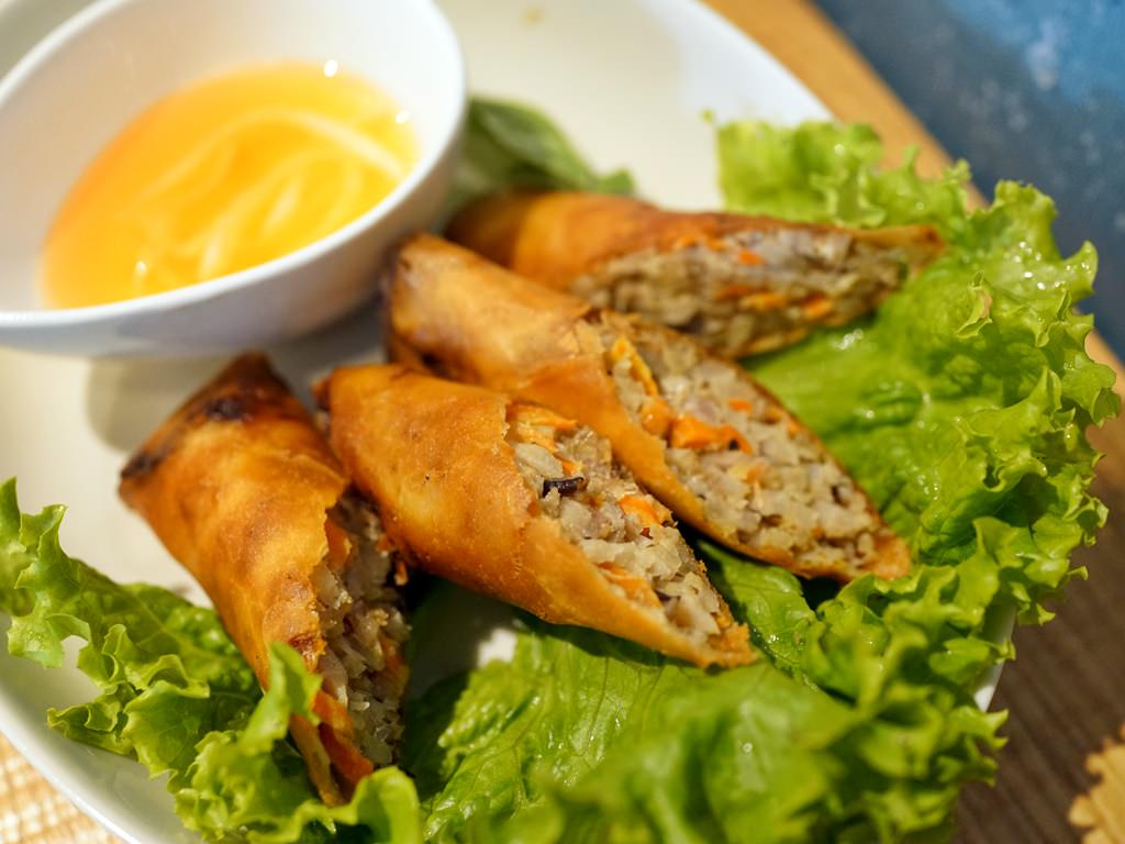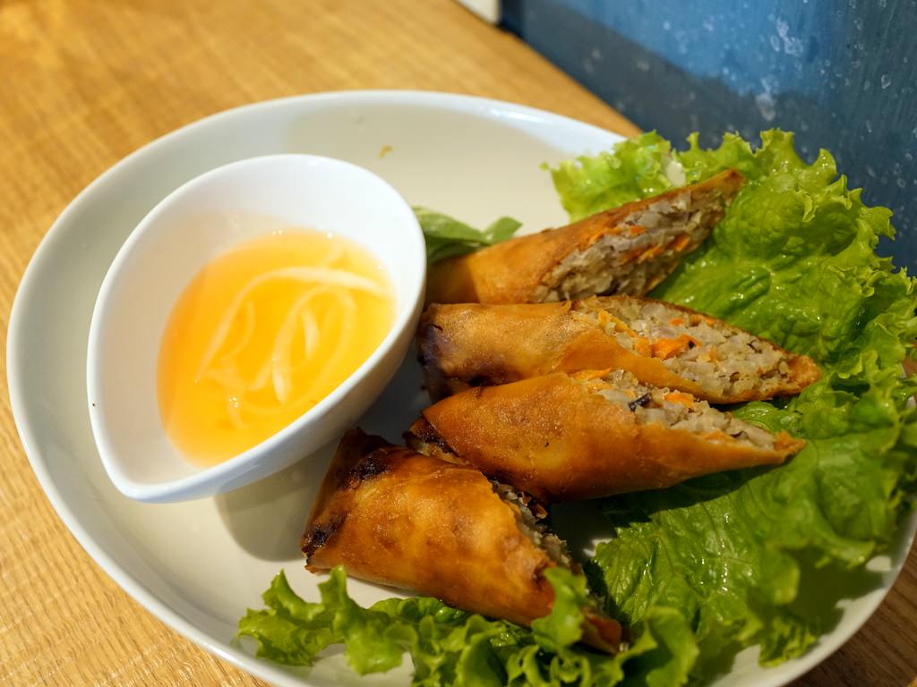 春捲外皮好像是店家手工製作的,炸完酥脆可口,單吃就蠻有味道的,也可以沾醬或用生菜包著吃。