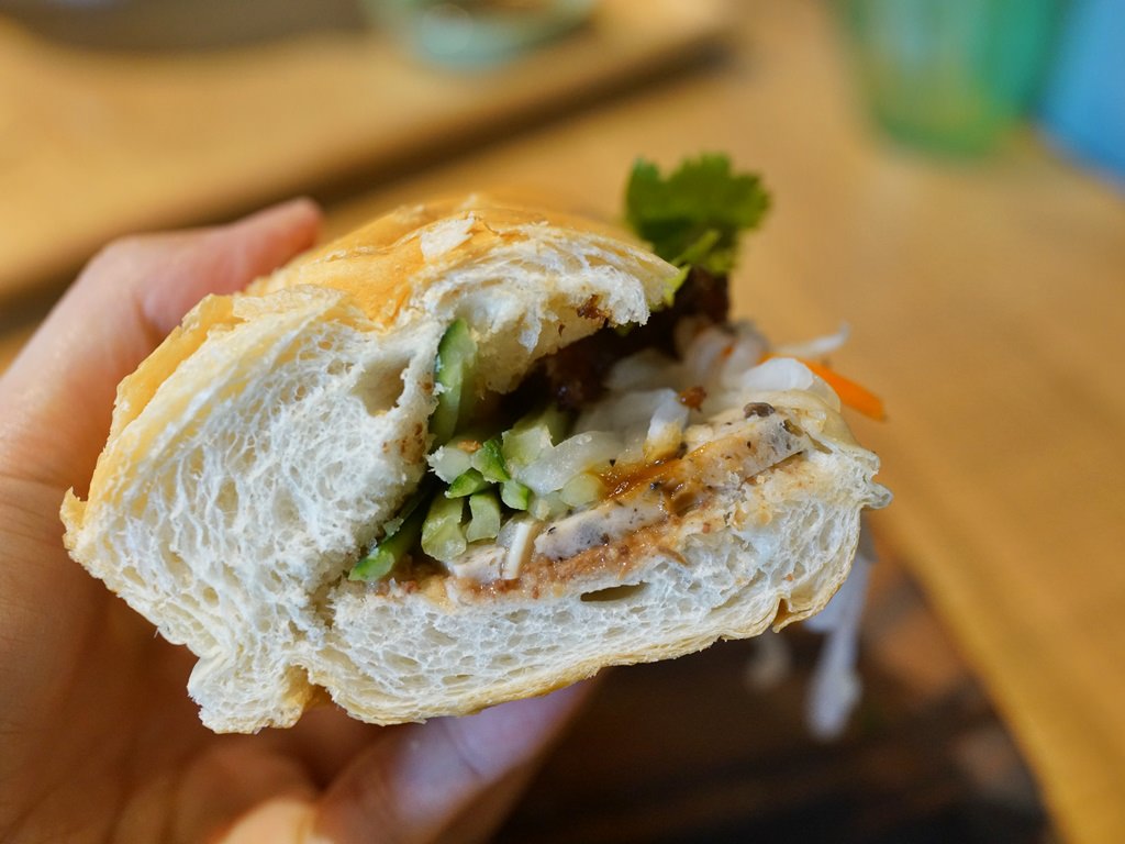 那天終於跟朋友相約去吃已經開好一陣子的「金福越式河粉」,店家 11:30 營業,我 11:17 到餐廳發現已經有人在門口等,越接近營業時間人越多,我整個驚呆耶,想說已經開蠻久的,竟然還要排隊…可見金福越式河粉的魅力不容小覷呀!我覺得整體餐點口味還行,特別推薦越式班密火腿麵包,法國麵包的酥脆度剛剛好且不刮口,餡料也很豐富,最棒的是內用有泰奶跟檸檬汁喝到飽!