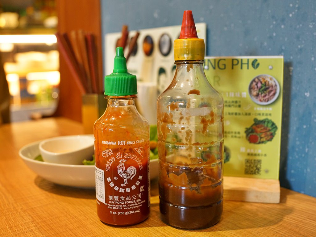 桌邊有提供餐具及醬料,兩罐分別是海鮮醬與辣味醬,可以1:1調製,作為牛肉沾醬~