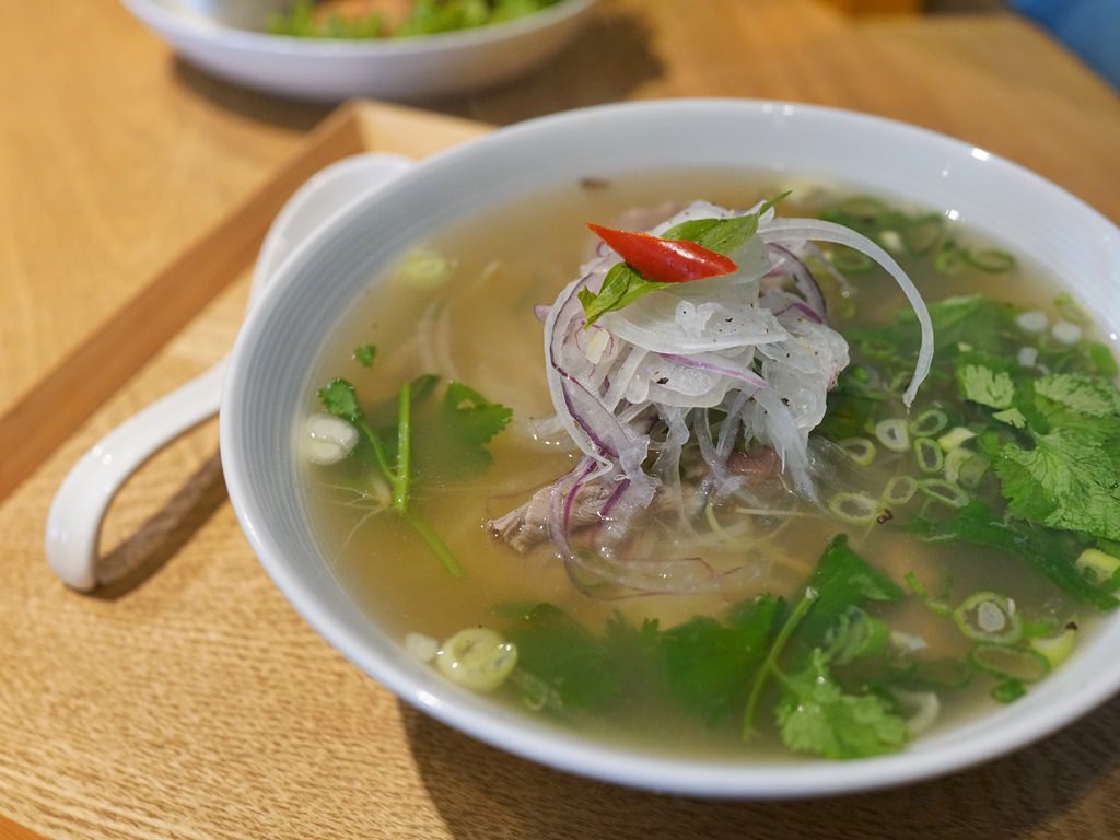單吃味道偏淡,建議酌量加一些檸檬與辣椒提味更好吃~剛端上桌的時候牛肉是生生的一坨在上面,記得趕快把它放入湯裡浸泡一下,牛肉口感柔嫩,河粉口感也很滑溜,而且份量蠻多的!