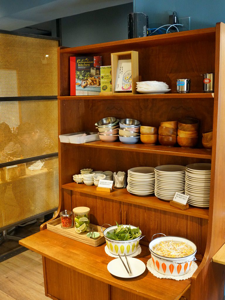 金福越式河粉的前身是 Kinfolk cafe,是我很喜歡的咖啡廳,當時聽到他們要歇業好難過,幸好金福保留原本大部分的裝潢、融入典雅的法式藍,置身在美麗的環境中,優雅的吃著越式料理感覺也不錯~