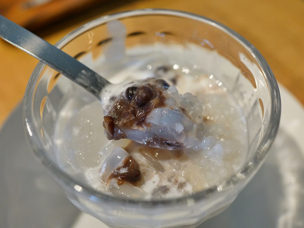 這是第一次加入「食時創新餐飲集團」的入會禮~我之前吃過的摩摩喳喳口味都偏甜,但他們的不會耶,裡面有椰果、西米露、紅豆泥、椰奶等,並加入一些碎冰,吃起來清涼消暑不會過於甜膩。