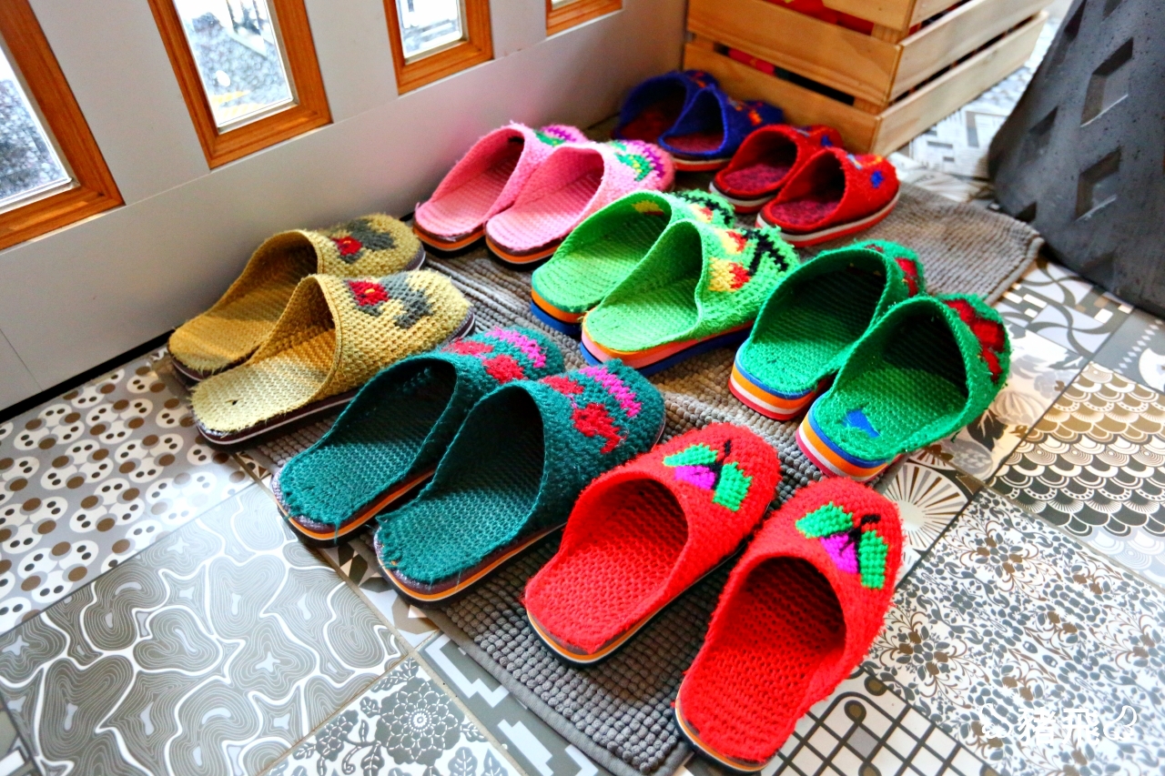 ▲進門後還備有針織室內拖鞋,各種花色都好美,我在歐洲旅遊的時候客廳裡也是穿這個耶!喜歡的話可以跟民宿購買!