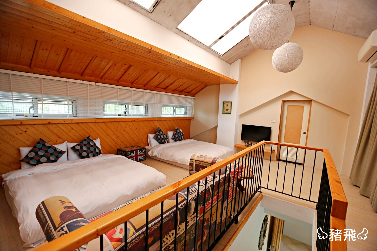 這個六人房也有天窗設計,採光比三人房更好,斜屋頂讓這個空間多了幾分可愛感。一群朋友或是幾個家庭出來旅遊,很推薦這個房型。