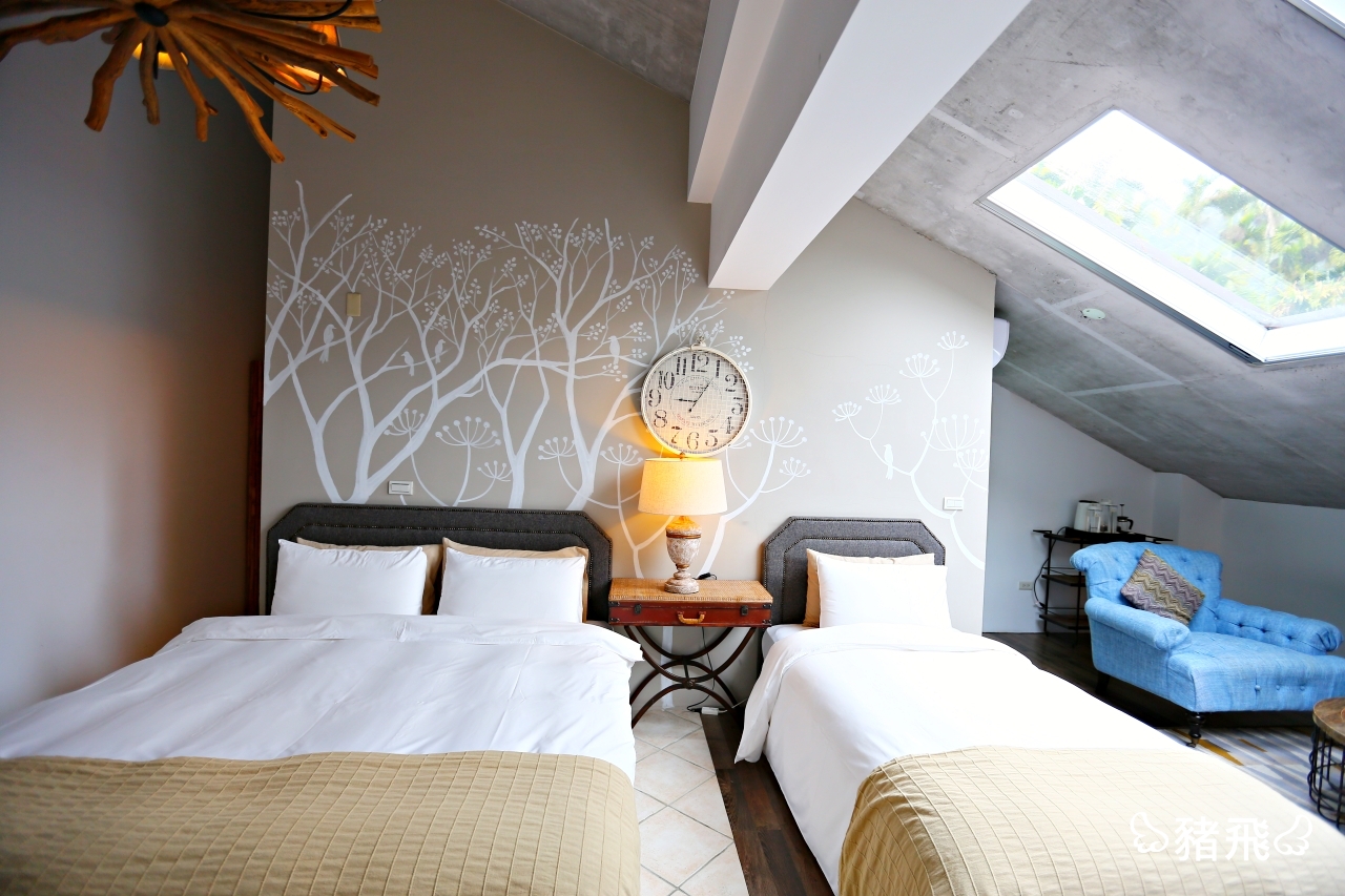 民宿分為前棟與後棟,前棟僅有五個房間,後棟則是比較多房型。這次入住的是前棟。在網路上看前棟的房間比較有設計感,而且大廳也好美!豬飛比較推薦前棟喔!