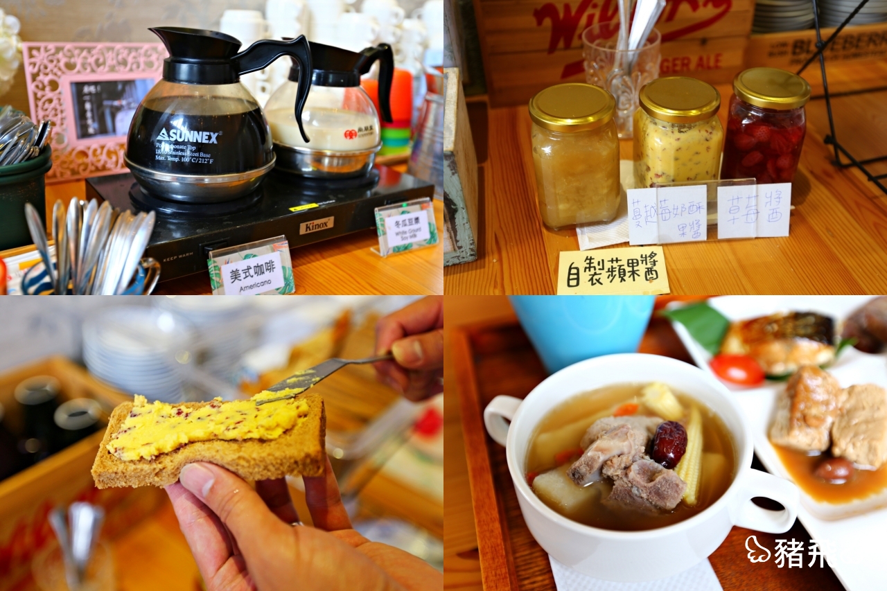 這裡住宿均附早餐,早餐供應時間早上八點至十點,可以睡飽一點再來用餐,飲料、附餐採自助式,主餐由廚房準備。