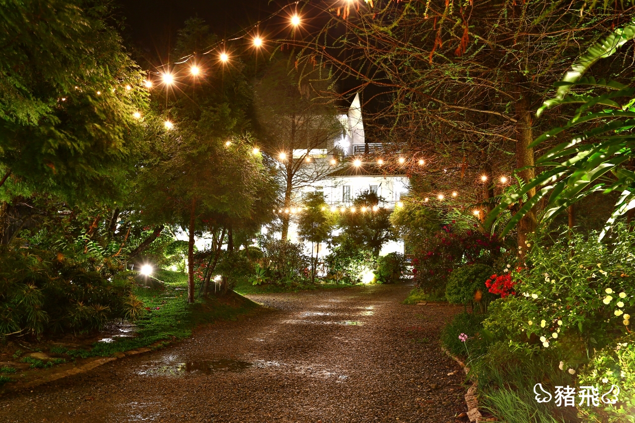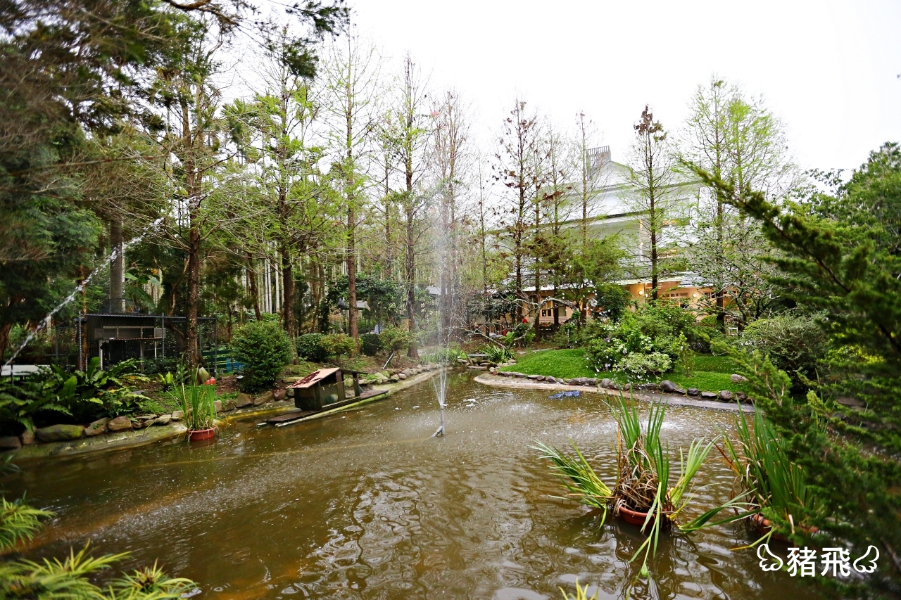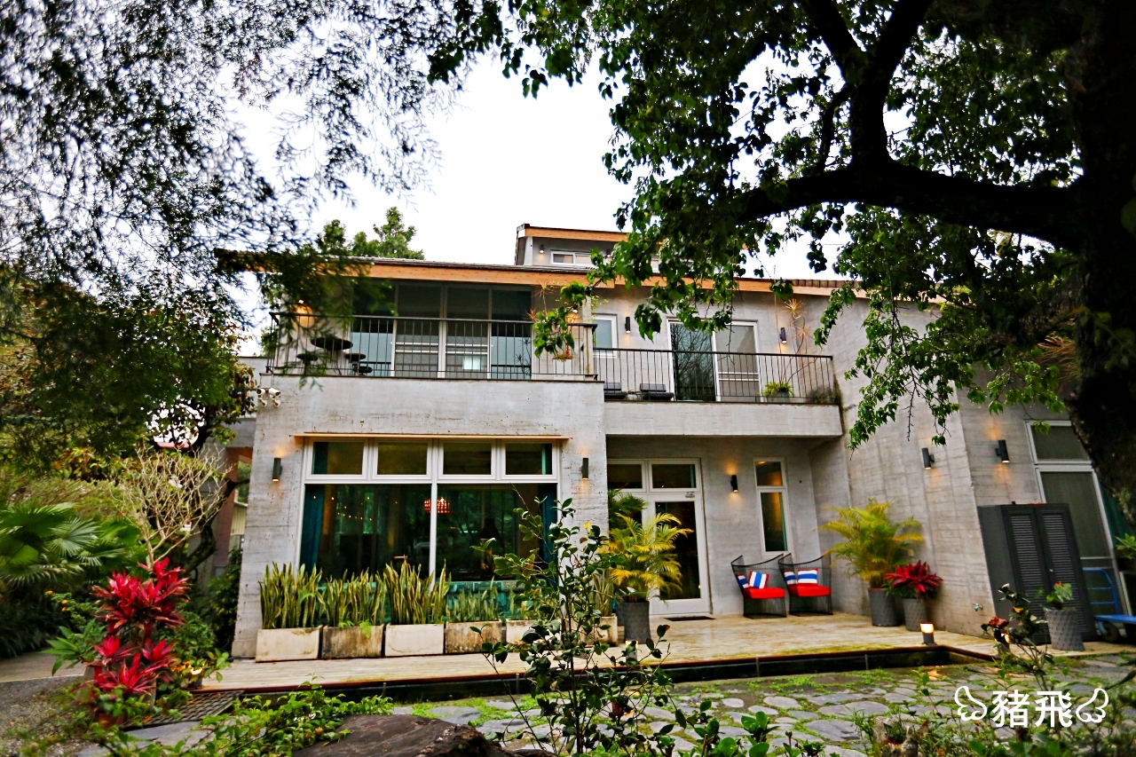 順著入口走到底是後棟民宿後方,有共用停車場,停好車拿著行李慢慢的散步到我們入住的前棟民宿。這個民宿光是大花園就綠意盎然,還有一座大水池,可以看得出來主人花了不少心力維持這個美景。光是園藝的整理就費時費力又花不少錢了。