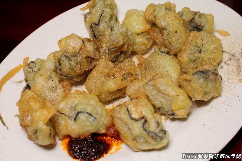 ▲▼炸蚵仔酥,產地直送的蚵仔飽滿大顆,用來炸蚵仔酥也很棒,沾點店家自製辣椒醬,想喝啤酒點來也很搭