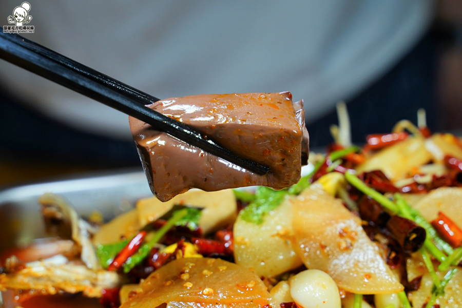不僅有多種辣椒調配,配料還有鴨血、豆腐、蒜頭、洋蔥