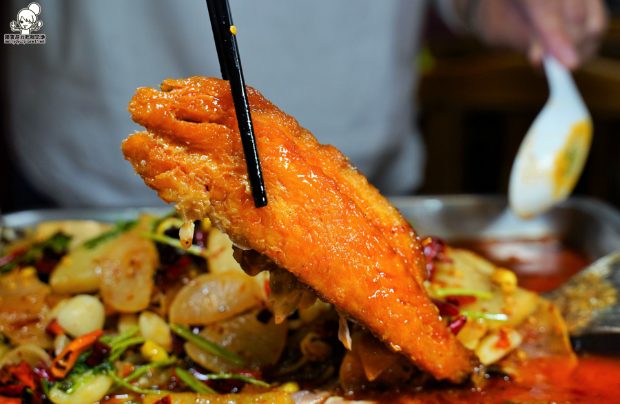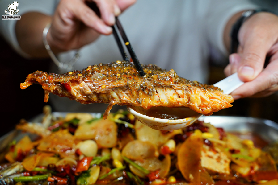 新鮮大尾的鱸魚有油炸過,使用獨門調味帶出層次辣度、魚肉鮮味