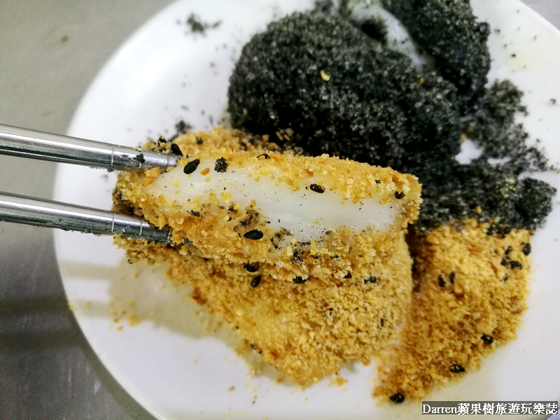 小時候初一十五家裡拜拜都會準被麻糬,然後要吃得時候都要沾花生粉再用筷子切開,切成一小塊這樣比較方便吃,接下來還有其他家燒麻糬要插旗,繼續往燒麻糬的航道前進吧XDD