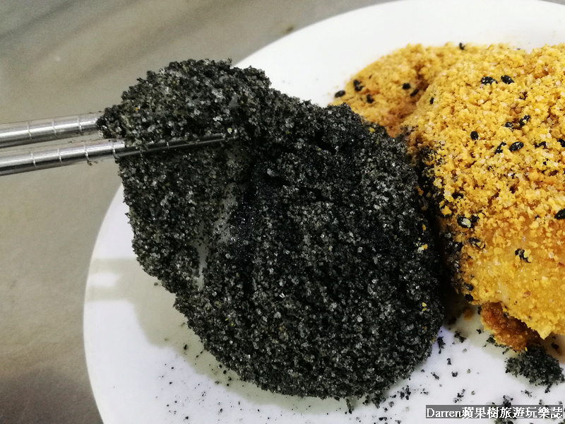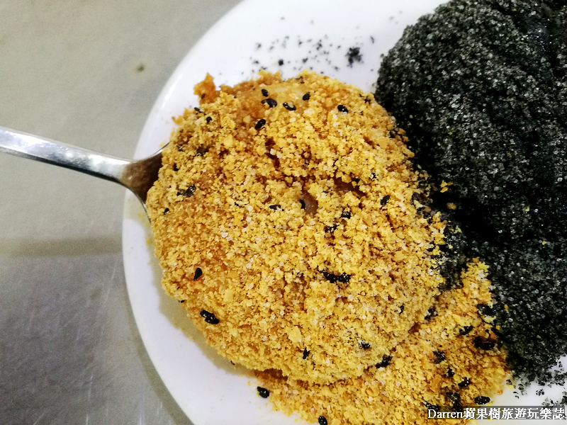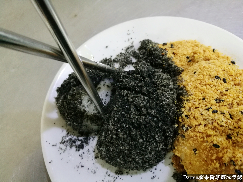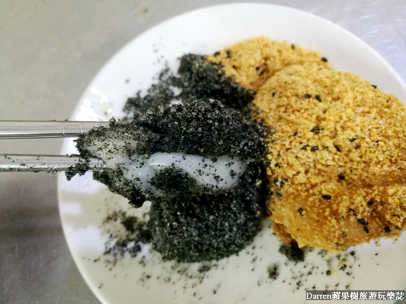 綜合燒麻糬有花生和芝麻兩種口味選擇,想要都吃的人就跟樹小編一樣點個綜合吧!!麻糬用筷子夾起來會慢慢垂下來,不論彈性或延展性都不錯,口感綿密花生和芝麻的香氣都不錯